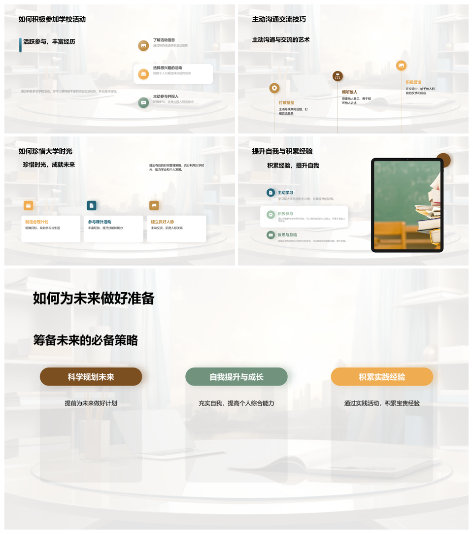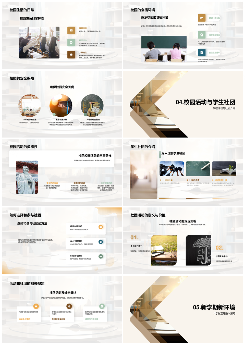风云办公提供的探索大学校园生活融入文化社团活动PPT模板,下载格式为pptx,一共33页,作品中文字及图均可以修改和编辑,图片更改请在作品中右键图片并更换,文字修改请直接点击文字进行修改。
