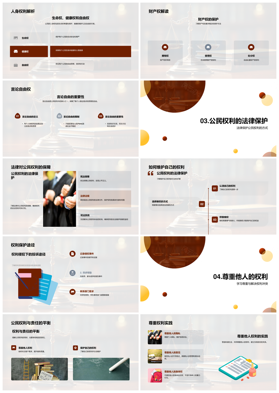 风云办公提供的公民权利实践与法护公正筑和谐社会PPT模板,下载格式为pptx,一共23页,作品中文字及图均可以修改和编辑,图片更改请在作品中右键图片并更换,文字修改请直接点击文字进行修改。