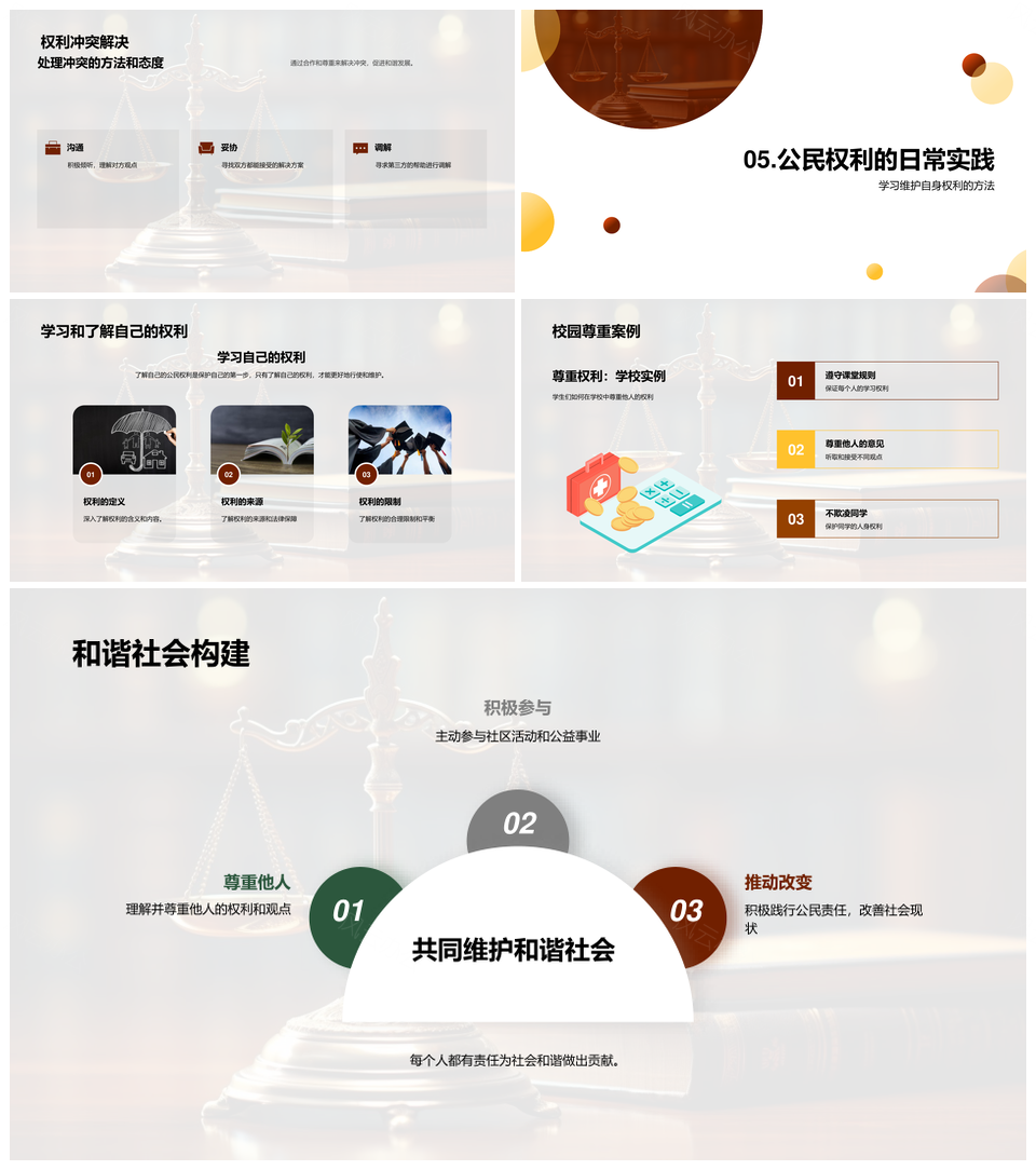这是一张公民权利实践与法护公正筑和谐社会PPT模板,包含公民权利、实践、法护、公正、和谐社会等主题内容,也可用作公民权利实践法护公正、实践法护公正和谐、法护公正和谐社会实践、公民权利法护公正社会、实践公正筑和谐社会、公正筑和谐社会公民、公民权利法护和谐社会、法护公正筑和谐社会、公民权利公正和谐社会、和谐社会公民权利法护、法护公民权利公正、实践法护和谐社会、公民权利和谐社会、法护和谐社会、公正和谐社会等PPT场景使用。