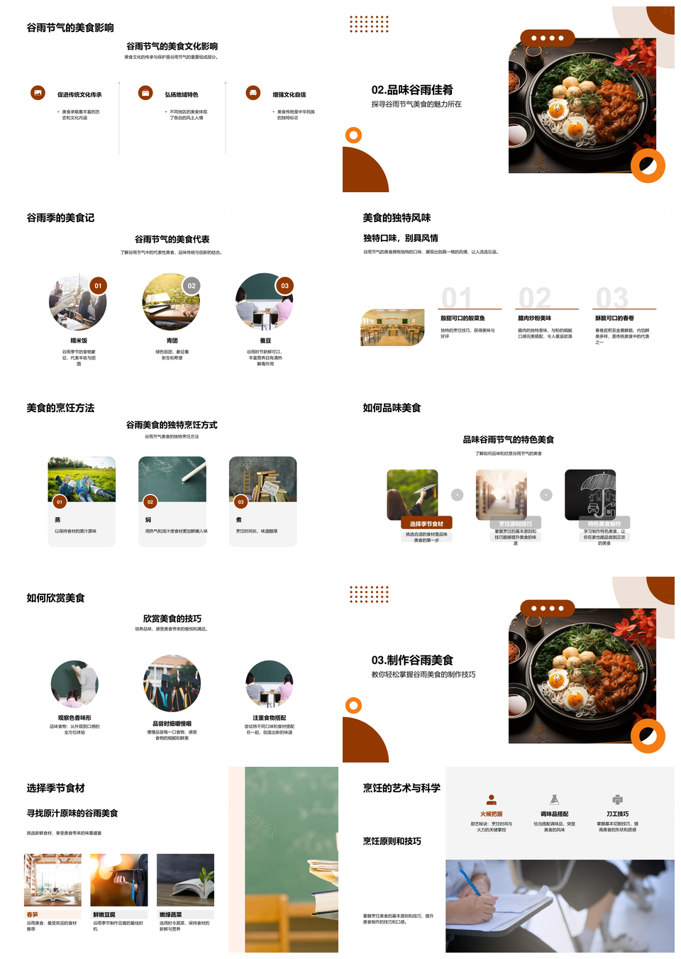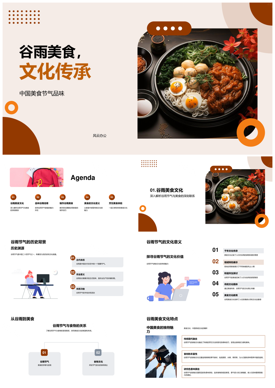 风云办公提供的谷雨节气美食传承中华文化PPT模板,下载格式为pptx,一共33页,作品中文字及图均可以修改和编辑,图片更改请在作品中右键图片并更换,文字修改请直接点击文字进行修改。