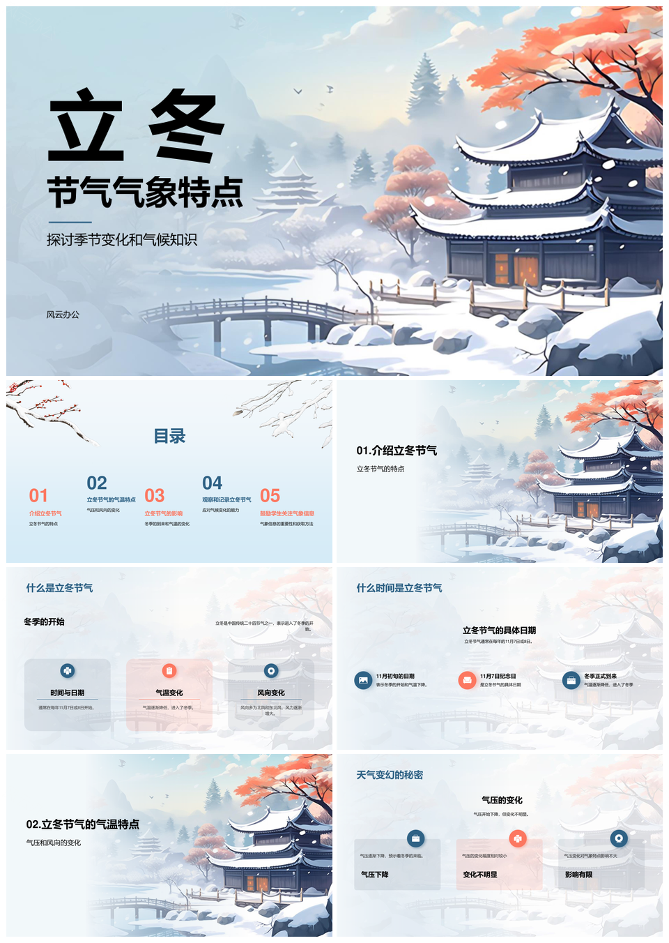 立冬节气气象季节变化气候知识冬季二十四节气PPT模板推荐