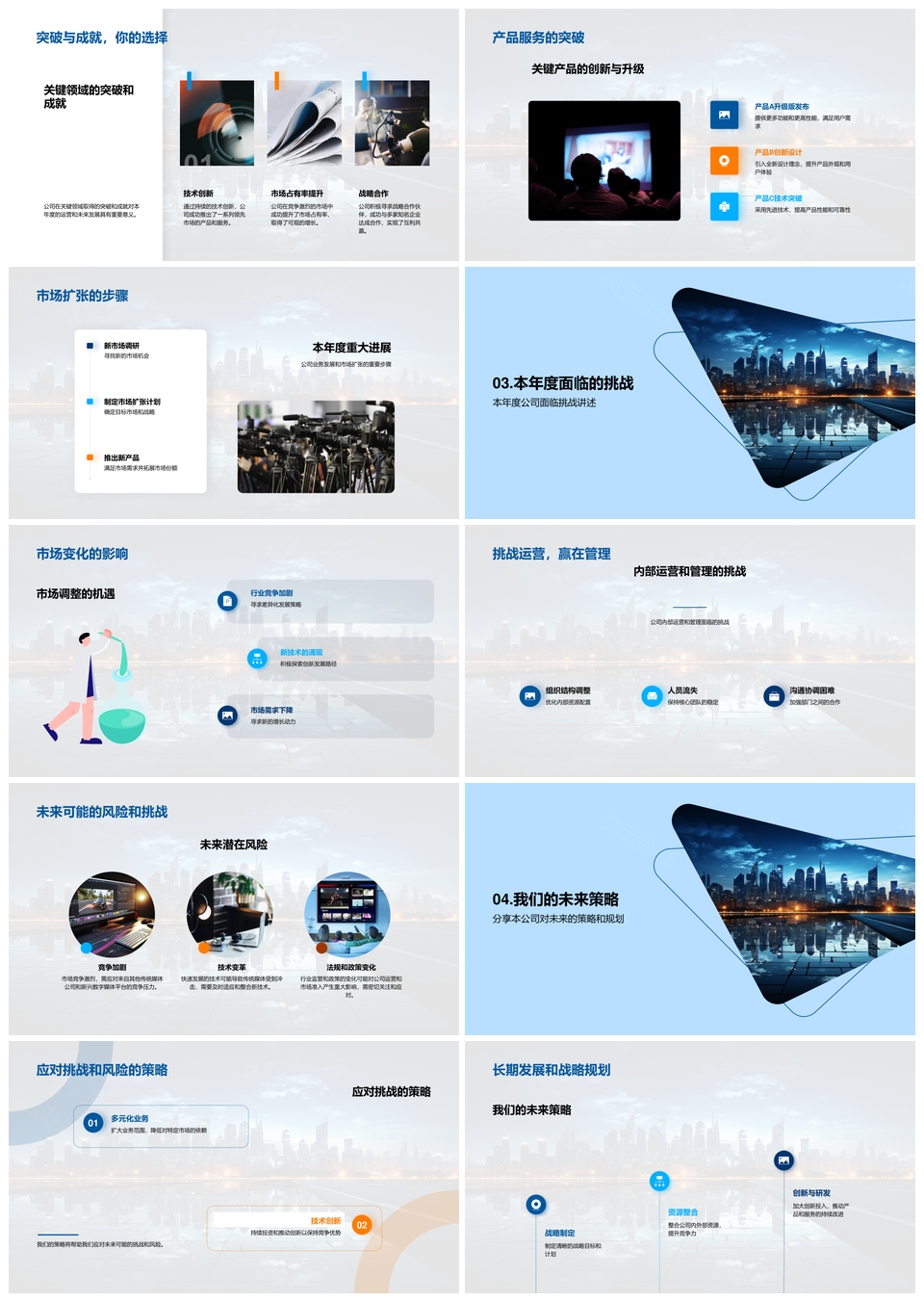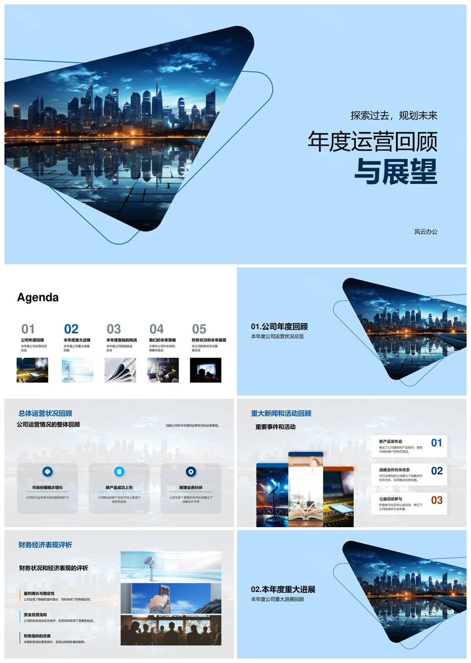 风云办公提供的年度运营总体回顾市场扩张展望PPT模板,下载格式为pptx,一共23页,作品中文字及图均可以修改和编辑,图片更改请在作品中右键图片并更换,文字修改请直接点击文字进行修改。