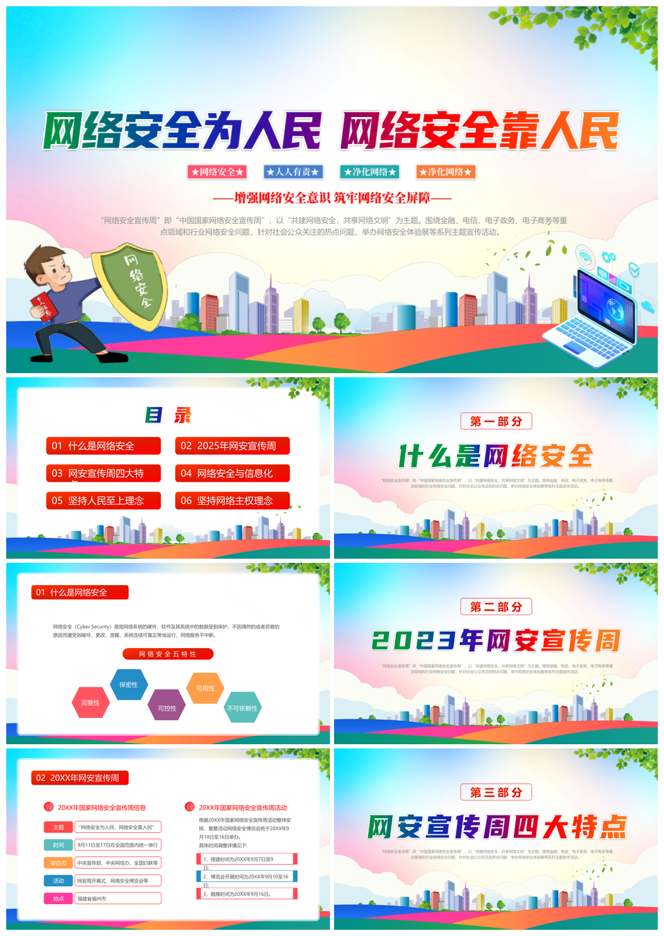 2025蓝色清新国家网络安全周主题活动动态PPT模板推荐