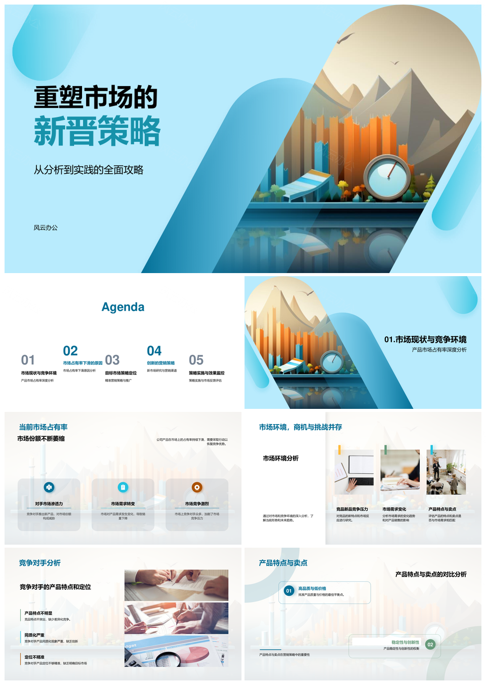 风云办公提供的重塑市场新晋策略占位竞争环境需求PPT模板,下载格式为pptx,一共33页,作品中文字及图均可以修改和编辑,图片更改请在作品中右键图片并更换,文字修改请直接点击文字进行修改。