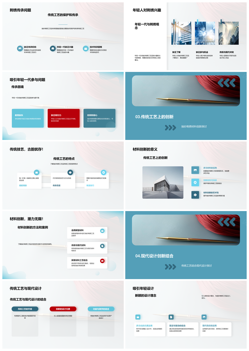 这是一张抽纱刺绣工艺师本科答辩创新传承演讲稿PPT模板,包含抽纱、刺绣、工艺师、本科、答辩、创新、传承、演讲稿等主题内容,也可用作抽纱刺绣工艺师本科答辩、刺绣工艺师本科答辩创新、工艺师本科答辩创新传承、本科答辩创新传承演讲稿、抽纱刺绣工艺师答辩、刺绣工艺师本科创新、工艺师答辩创新传承、本科答辩传承演讲稿、抽纱刺绣答辩创新、刺绣工艺师创新传承、工艺师本科传承、抽纱刺绣工艺师、答辩创新传承演讲稿、抽纱刺绣创新、工艺师答辩传承等PPT场景使用。 风云办公提供的抽纱刺绣工艺师本科答辩创新传承演讲稿PPT模板,下载格式为pptx,一共23页,作品中文字及图均可以修改和编辑,图片更改请在作品中右键图片并更换,文字修改请直接点击文字进行修改。