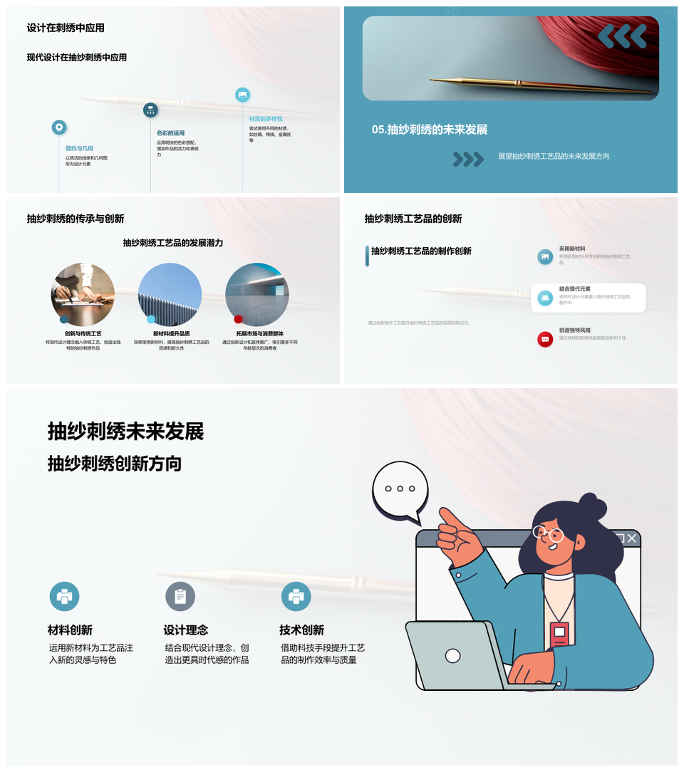 抽纱刺绣工艺师本科答辩创新传承演讲稿PPT模板推荐