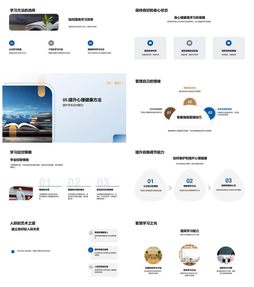风云办公提供的初二学生心理健康与高效学习引导PPT模板,下载格式为pptx,一共26页,作品中文字及图均可以修改和编辑,图片更改请在作品中右键图片并更换,文字修改请直接点击文字进行修改。