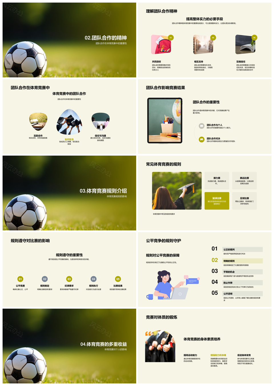 风云办公提供的小学足球竞赛规则合作教学课件设计PPT模板,下载格式为pptx,一共24页,作品中文字及图均可以修改和编辑,图片更改请在作品中右键图片并更换,文字修改请直接点击文字进行修改。