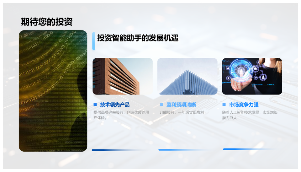 这是一张AI驱动智能助手革新商业模式引投资者聚焦芯片PPT模板,包含AI、驱动、智能助手、革新、商业模式、投资者、聚焦、芯片等主题内容,也可用作AI驱动智能助手革新商业模式、驱动智能助手革新商业模式、AI驱动智能助手革新、智能助手革新商业模式引、驱动智能助手革新商业、革新商业模式引投资者、商业模式引投资者聚焦、引投资者聚焦芯片、AI驱动智能助手、驱动智能助手革新、智能助手革新商业、革新商业模式引、商业模式引投资、投资者聚焦芯片、聚焦芯片商业等PPT场景使用。 风云办公提供的AI驱动智能助手革新商业模式引投资者聚焦芯片PPT模板,下载格式为pptx,一共29页,作品中文字及图均可以修改和编辑,图片更改请在作品中右键图片并更换,文字修改请直接点击文字进行修改。