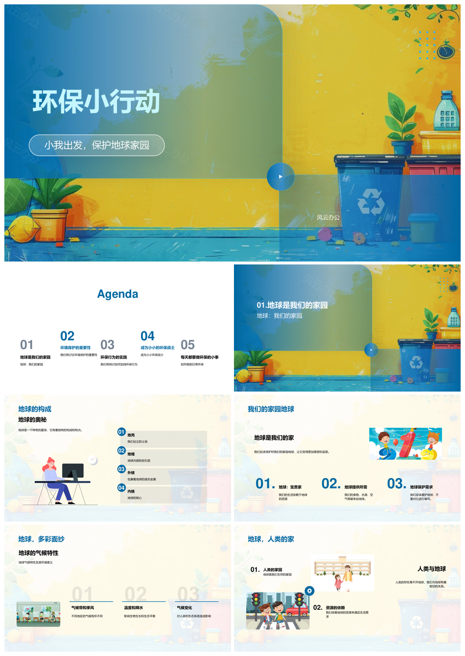 风云办公提供的环保行动守护地球垃圾分类减塑教育PPT模板,下载格式为pptx,一共28页,作品中文字及图均可以修改和编辑,图片更改请在作品中右键图片并更换,文字修改请直接点击文字进行修改。