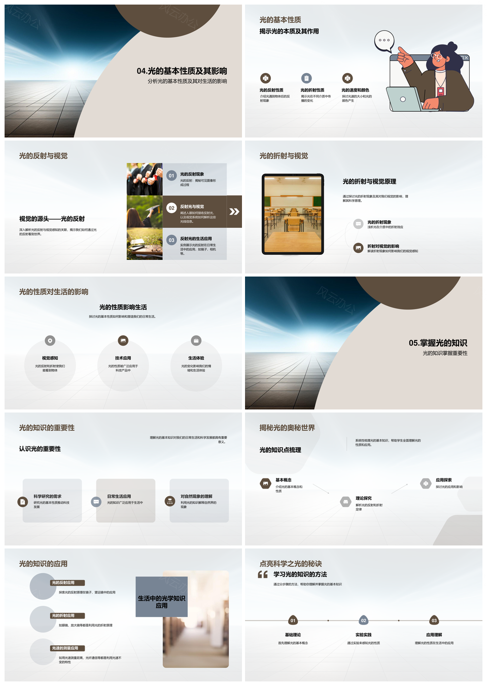 风云办公提供的光影奥秘揭秘光反射折射定律实验解析PPT模板,下载格式为pptx,一共28页,作品中文字及图均可以修改和编辑,图片更改请在作品中右键图片并更换,文字修改请直接点击文字进行修改。