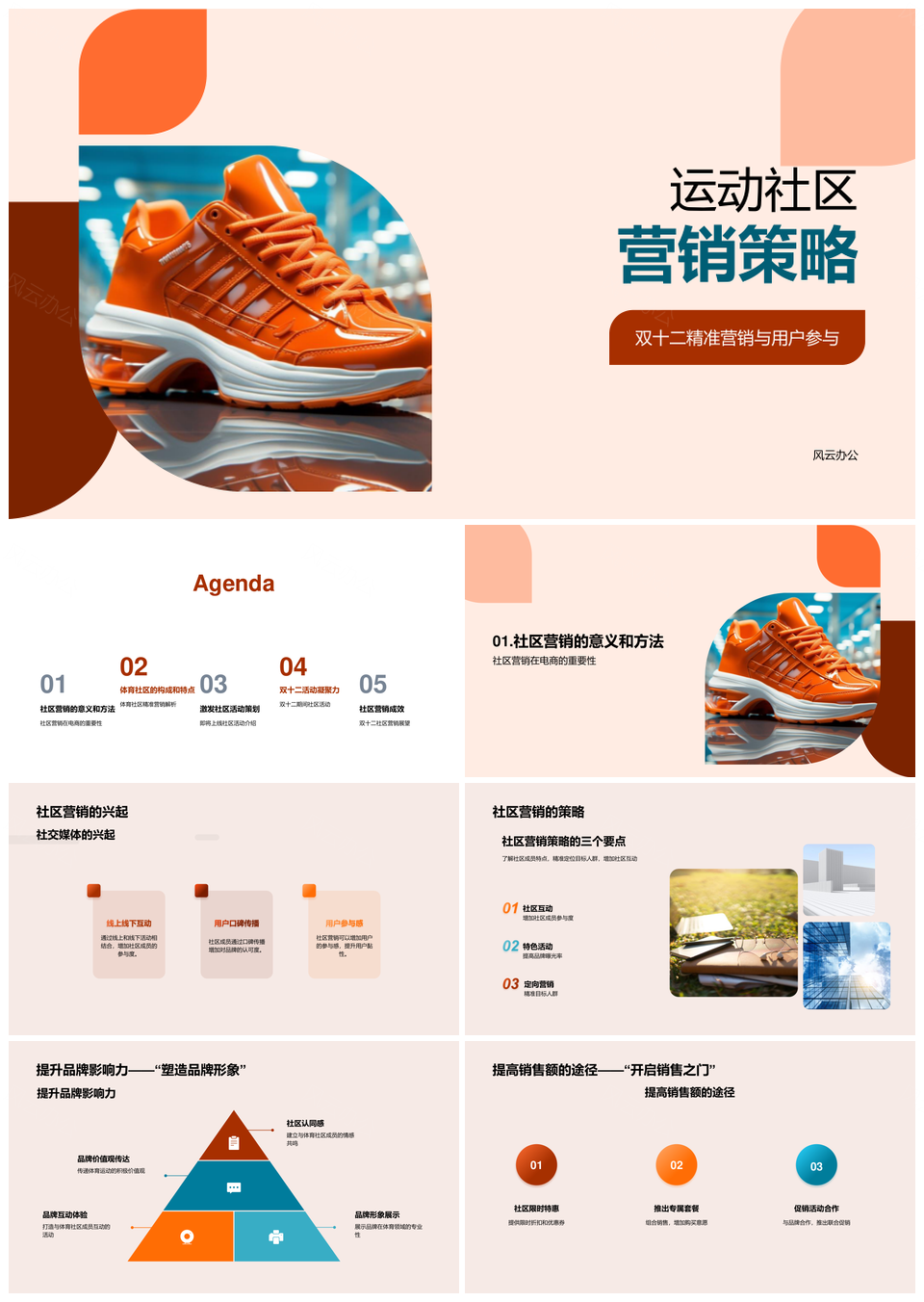 风云办公提供的双十二运动社区电商跑鞋精准营销策略PPT模板,下载格式为pptx,一共33页,作品中文字及图均可以修改和编辑,图片更改请在作品中右键图片并更换,文字修改请直接点击文字进行修改。