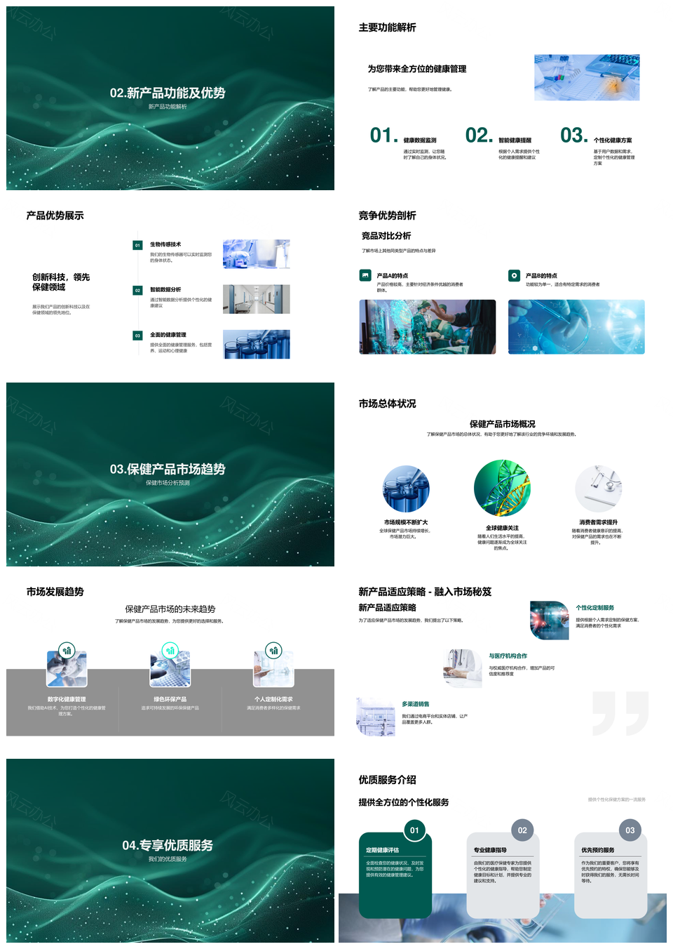 这是一张保健科技新品研发团队解析市场趋势竞品PPT模板,包含保健科技、新品研发、团队、解析、市场趋势、竞品等主题内容,也可用作保健科技新品研发团队解析、新品研发团队解析市场趋势、研发团队解析市场趋势竞品、保健科技解析市场趋势竞品、保健科技新品解析市场趋势、保健科技新品研发团队、新品研发团队解析、研发团队解析市场趋势、解析市场趋势竞品、保健科技解析市场趋势、新品解析市场趋势、保健科技新品、新品研发团队、研发团队解析、解析市场趋势等PPT场景使用。 风云办公提供的保健科技新品研发团队解析市场趋势竞品PPT模板,下载格式为pptx,一共24页,作品中文字及图均可以修改和编辑,图片更改请在作品中右键图片并更换,文字修改请直接点击文字进行修改。