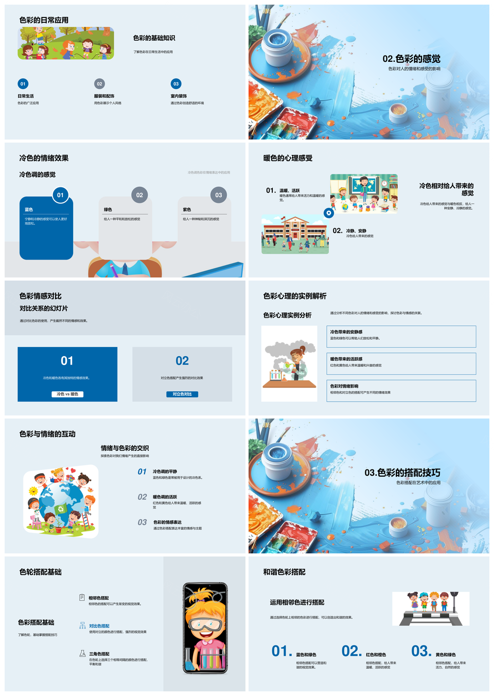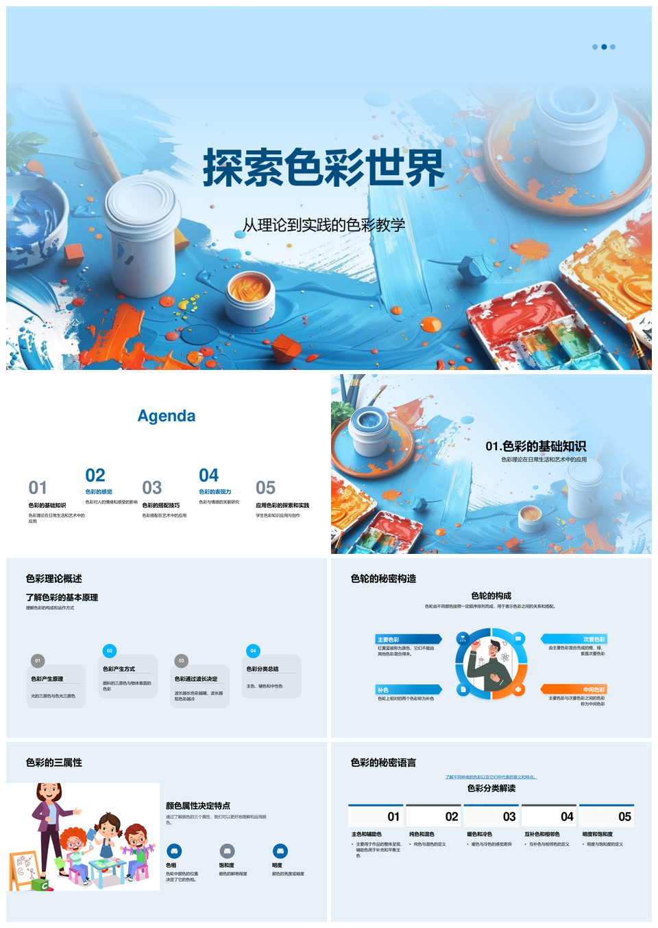 色彩教学分类搭配原理应用冷暖情感表达PPT模板