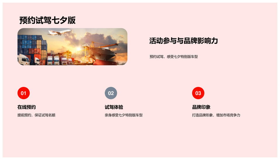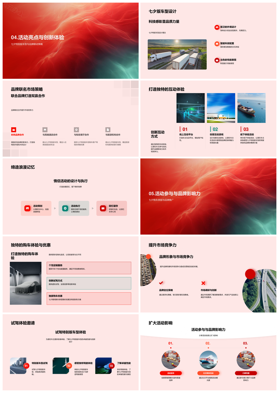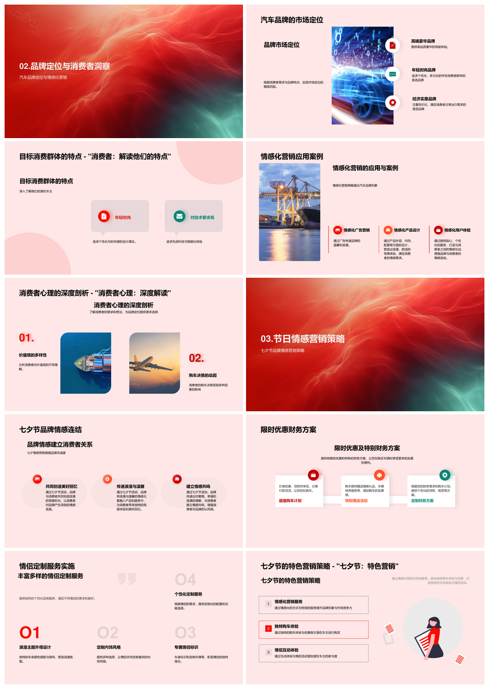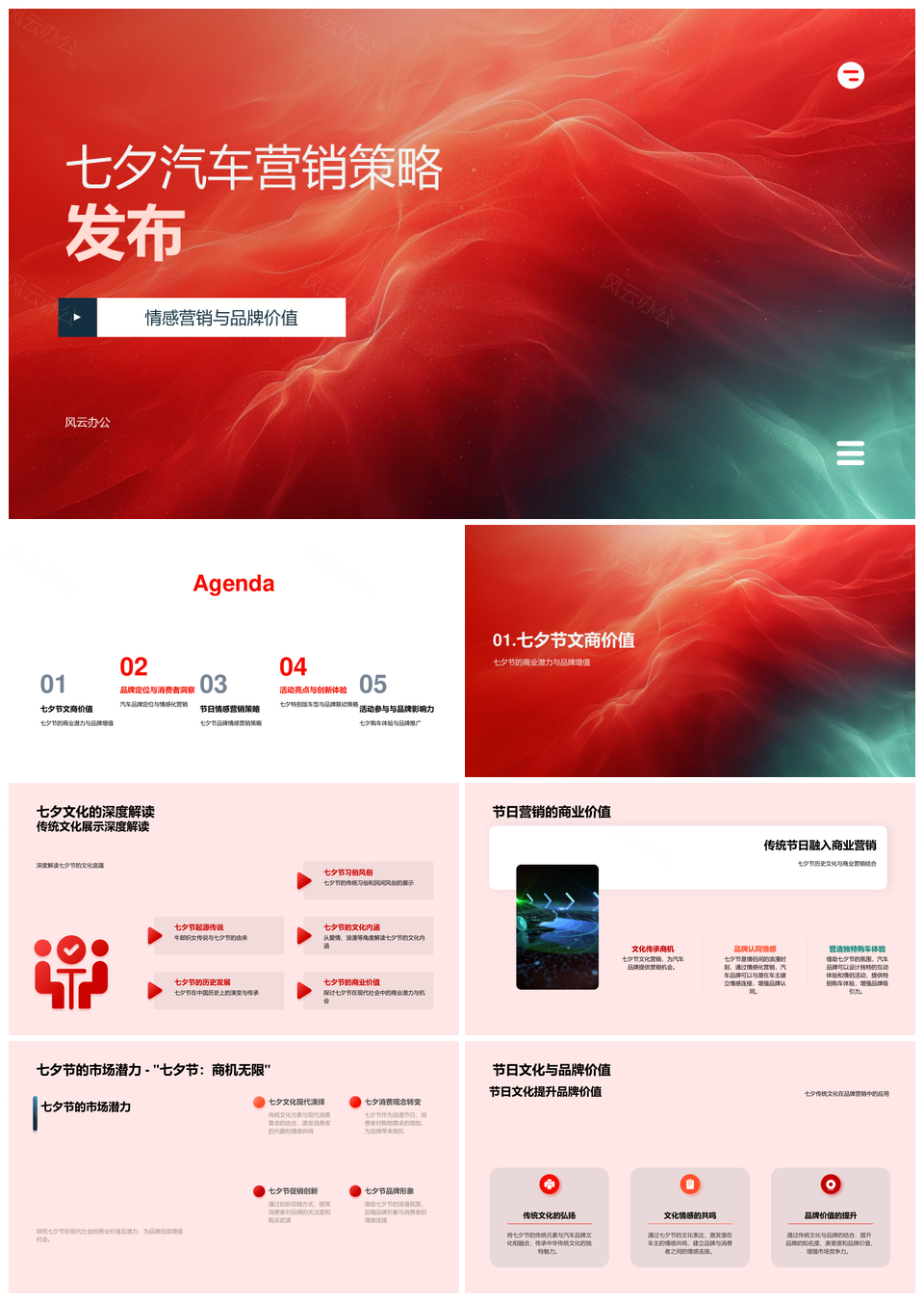 这是一张2025七夕汽车情感营销品牌定位消费者传统限时优惠策略PPT模板,包含2025、七夕、汽车、情感营销、品牌、定位、消费者、传统、限时优惠、策略等主题内容,也可用作2025七夕汽车情感营销、汽车情感营销品牌定位、品牌定位消费者传统、消费者传统限时优惠、传统限时优惠策略、2025七夕汽车、七夕汽车情感营销、品牌定位消费者传统、消费者传统限时优惠、传统限时优惠策略、2025七夕、七夕汽车、汽车情感营销、情感营销品牌定位、限时优惠策略等PPT场景使用。 风云办公提供的2025七夕汽车情感营销品牌定位消费者传统限时优惠策略PPT模板,下载格式为pptx,一共29页,作品中文字及图均可以修改和编辑,图片更改请在作品中右键图片并更换,文字修改请直接点击文字进行修改。