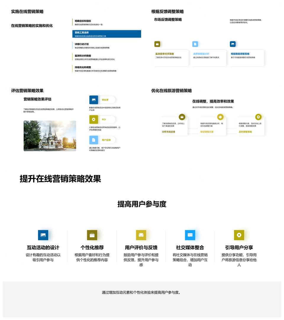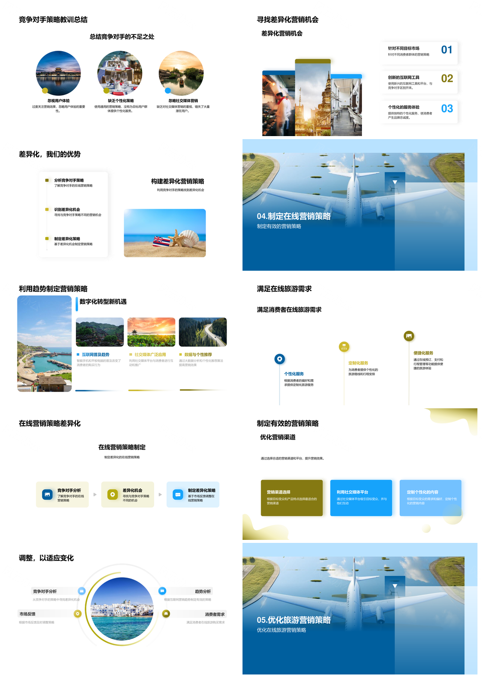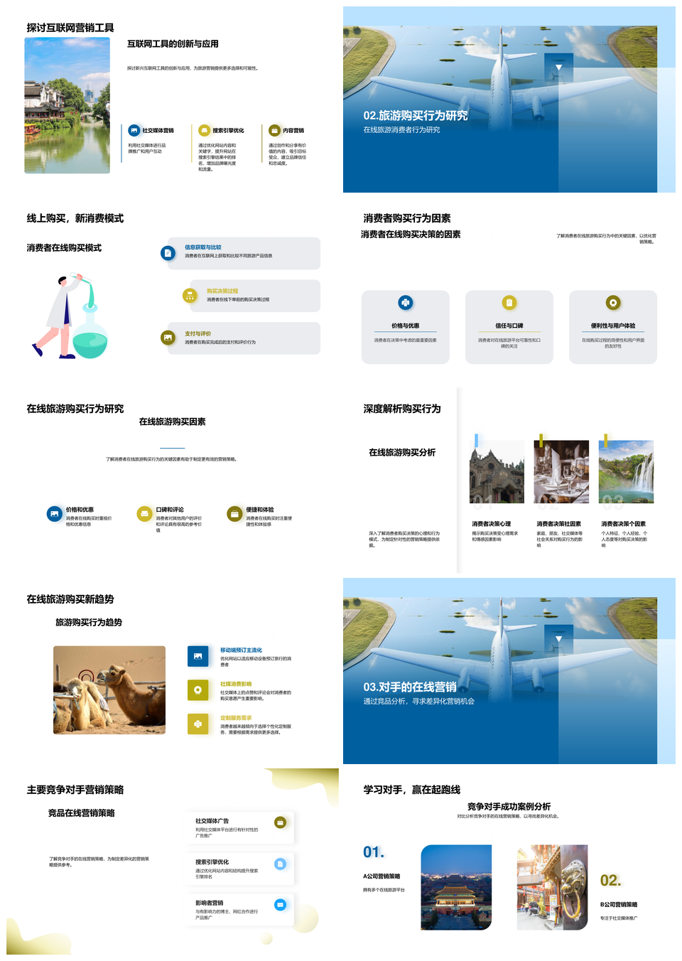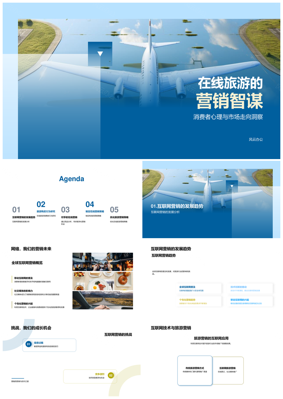 风云办公提供的在线旅游营销智谋心理趋势差异化PPT模板,下载格式为pptx,一共33页,作品中文字及图均可以修改和编辑,图片更改请在作品中右键图片并更换,文字修改请直接点击文字进行修改。