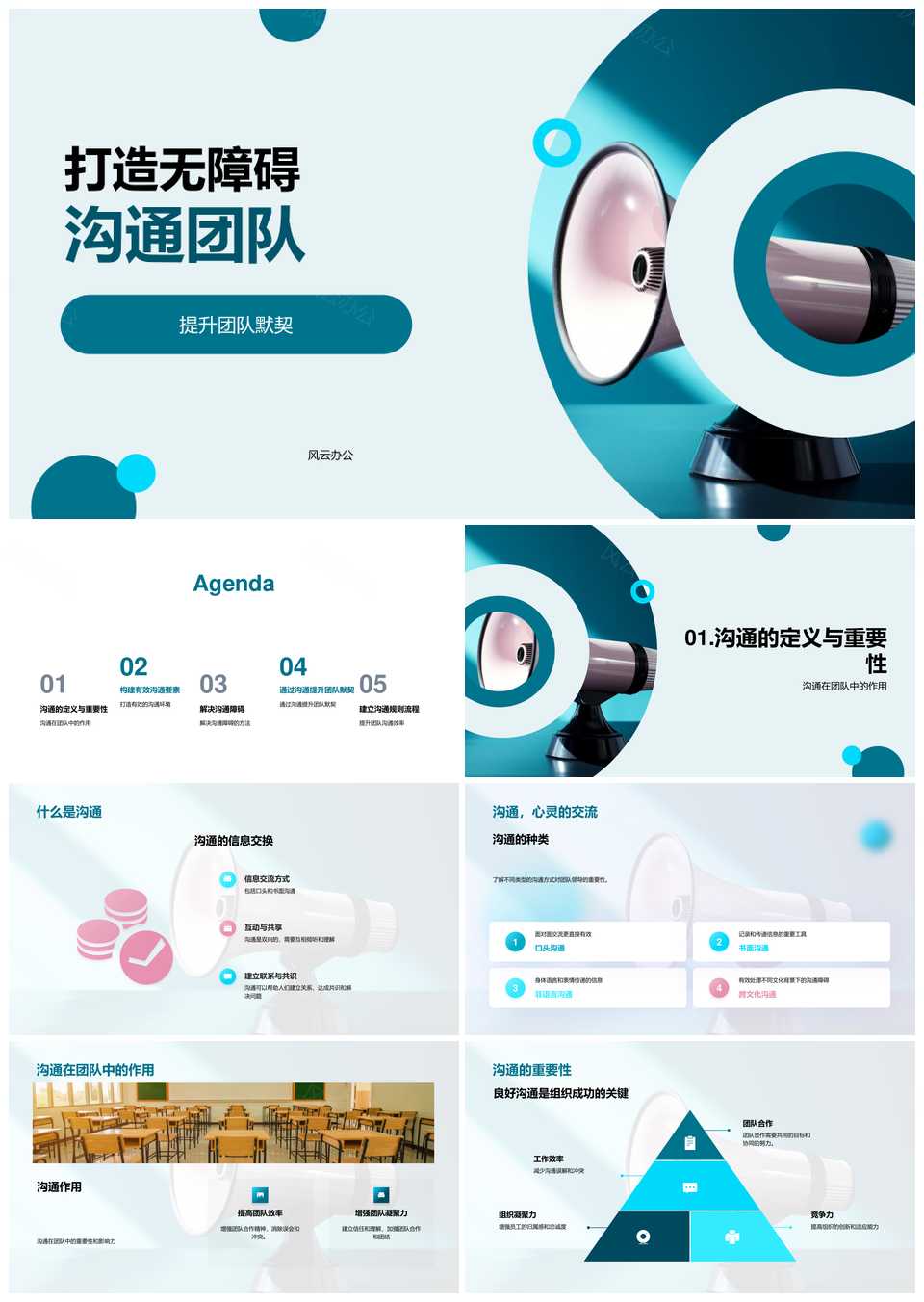 风云办公提供的无障碍沟通团队默契构建与障碍解决PPT模板,下载格式为pptx,一共26页,作品中文字及图均可以修改和编辑,图片更改请在作品中右键图片并更换,文字修改请直接点击文字进行修改。
