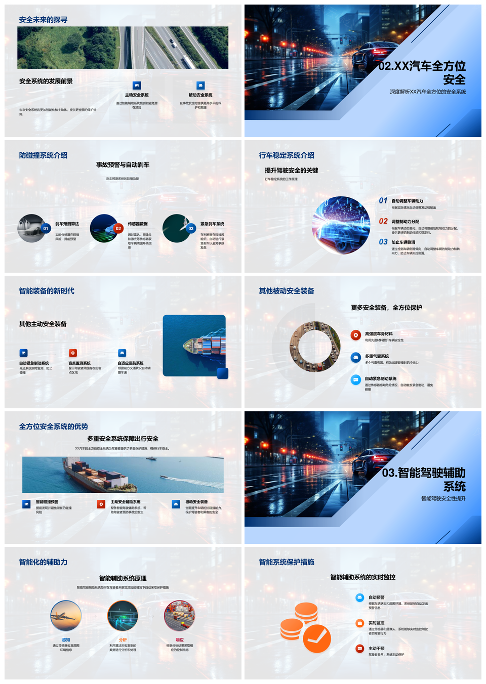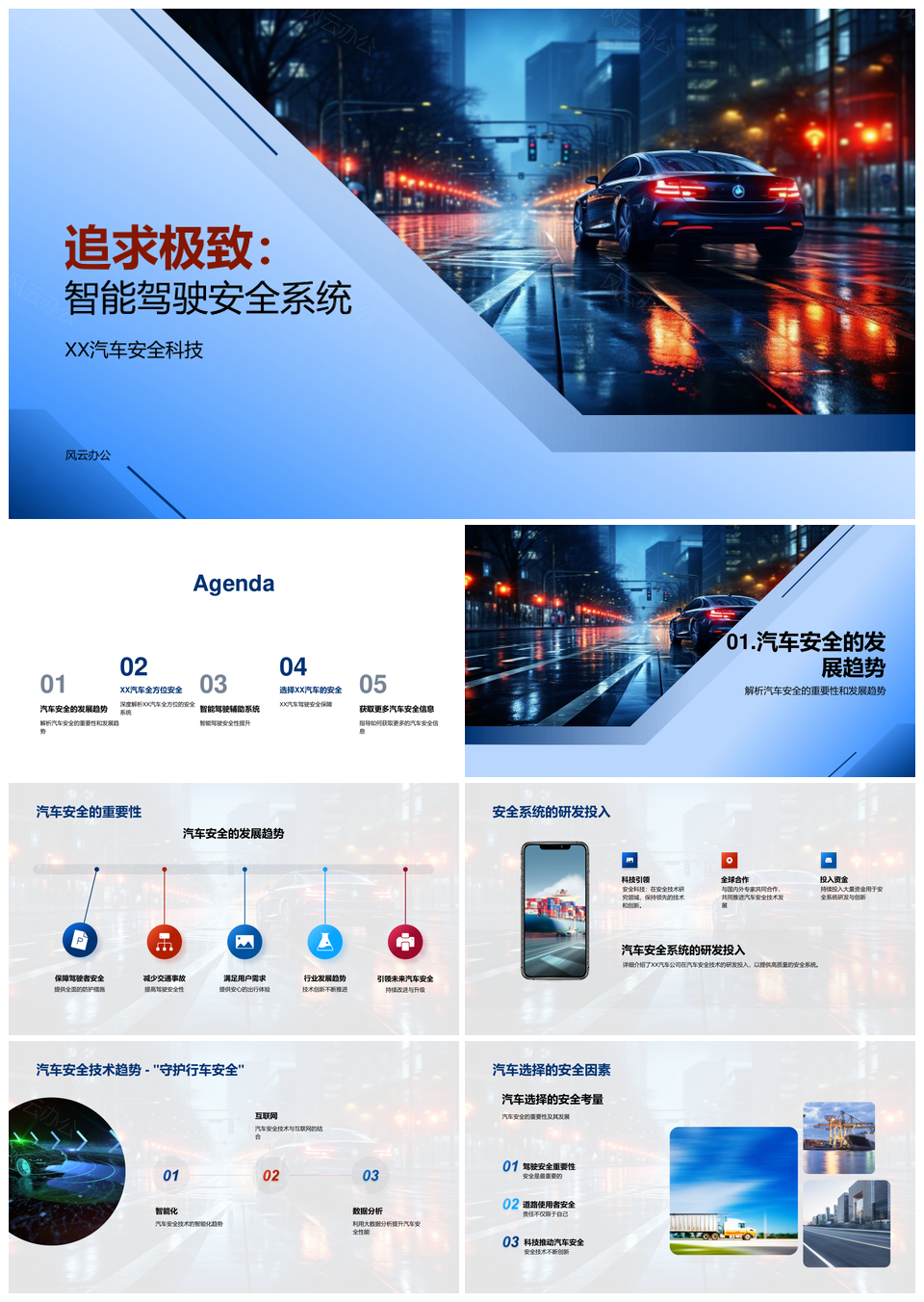 智能驾驶安全系统防碰撞行车稳定技术趋势PPT模板推荐