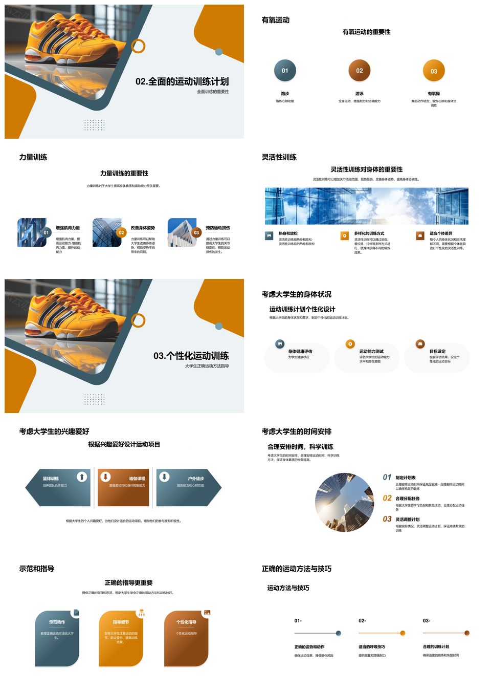 这是一张大学生个性化有氧哑铃训练提升身体素质能力PPT模板,包含大学生、个性化、有氧、哑铃训练、提升、身体素质、能力等主题内容,也可用作大学生个性化有氧哑铃训练、个性化有氧哑铃训练提升、有氧哑铃训练提升身体素质、哑铃训练提升身体素质能力、大学生个性化有氧哑铃、个性化有氧哑铃训练、有氧哑铃训练提升、哑铃训练提升身体素质、训练提升身体素质能力、大学生个性化有氧、个性化有氧哑铃、有氧哑铃训练、哑铃训练提升、训练提升身体素质、提升身体素质能力等PPT场景使用。 风云办公提供的大学生个性化有氧哑铃训练提升身体素质能力PPT模板,下载格式为pptx,一共26页,作品中文字及图均可以修改和编辑,图片更改请在作品中右键图片并更换,文字修改请直接点击文字进行修改。