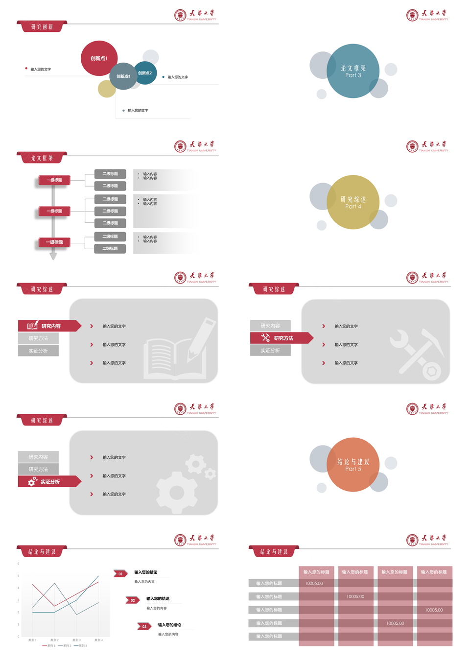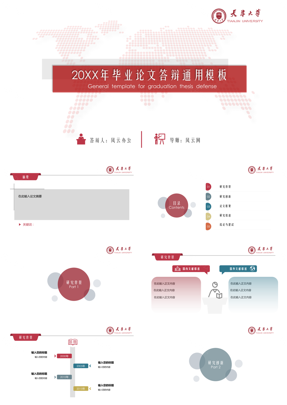 2025红色简约端庄结构完整毕业论文学术报告论文答辩PPT模板
