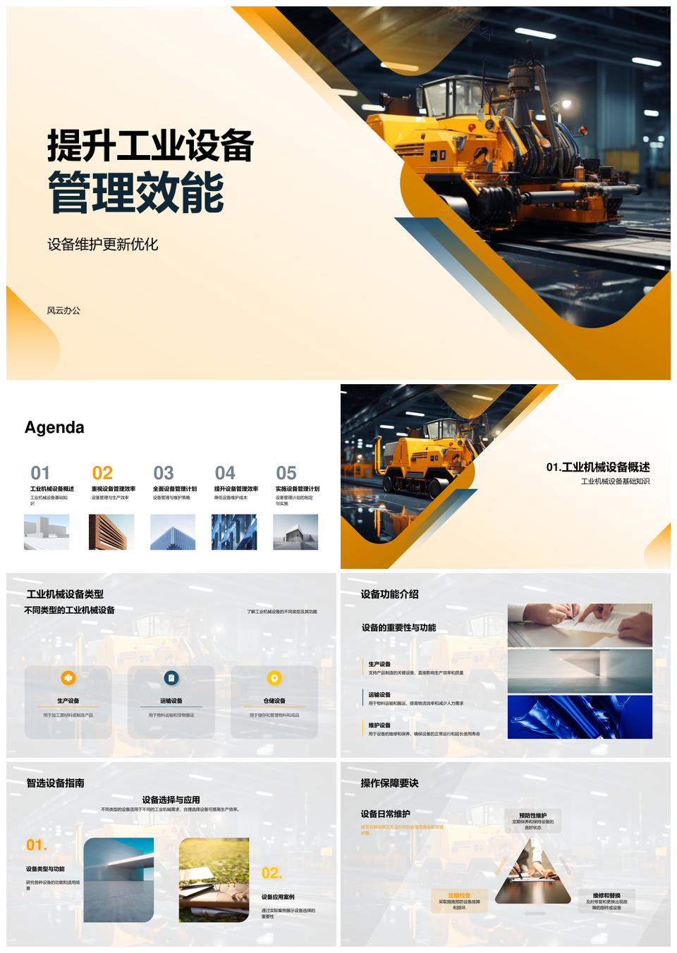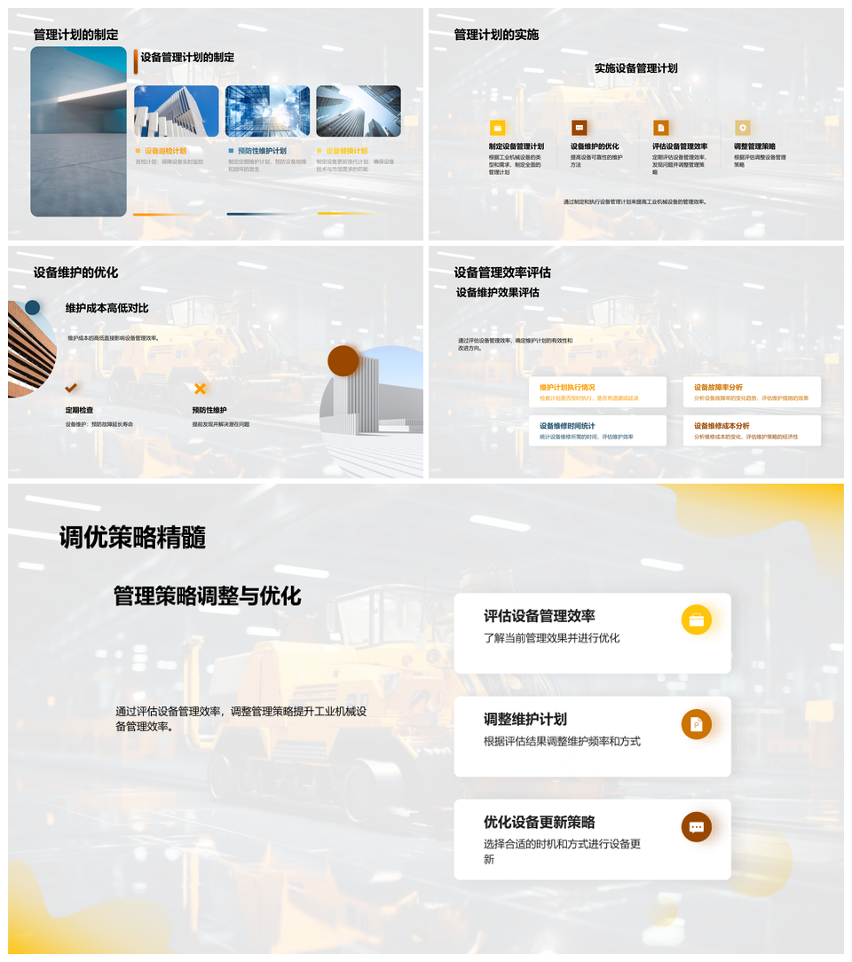 风云办公提供的工业机械维护优化与更新增效降本PPT模板,下载格式为pptx,一共33页,作品中文字及图均可以修改和编辑,图片更改请在作品中右键图片并更换,文字修改请直接点击文字进行修改。