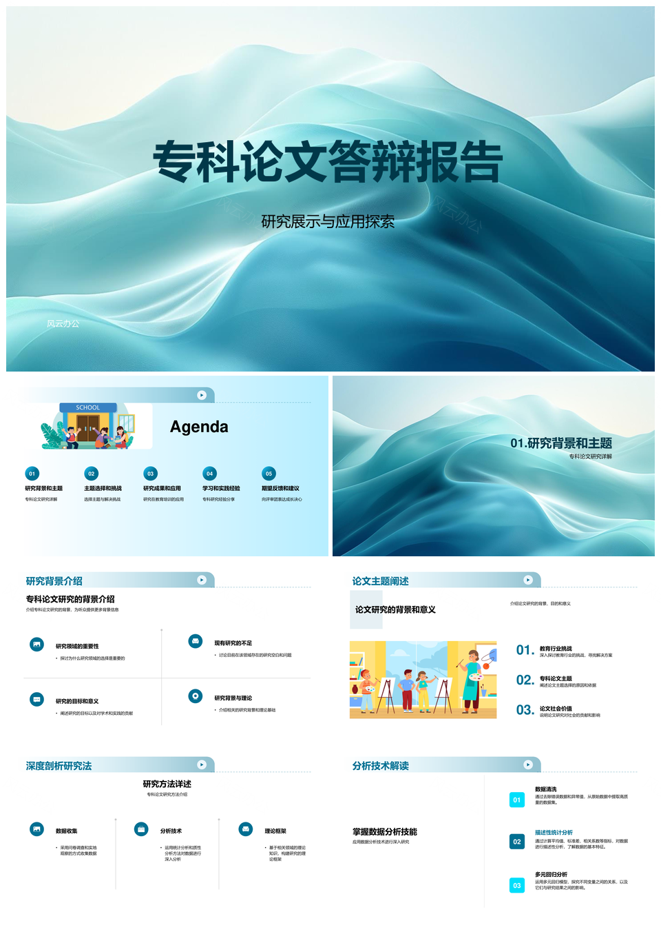 风云办公提供的教育培训专科论文答辩研究应用与前景PPT模板,下载格式为pptx,一共28页,作品中文字及图均可以修改和编辑,图片更改请在作品中右键图片并更换,文字修改请直接点击文字进行修改。