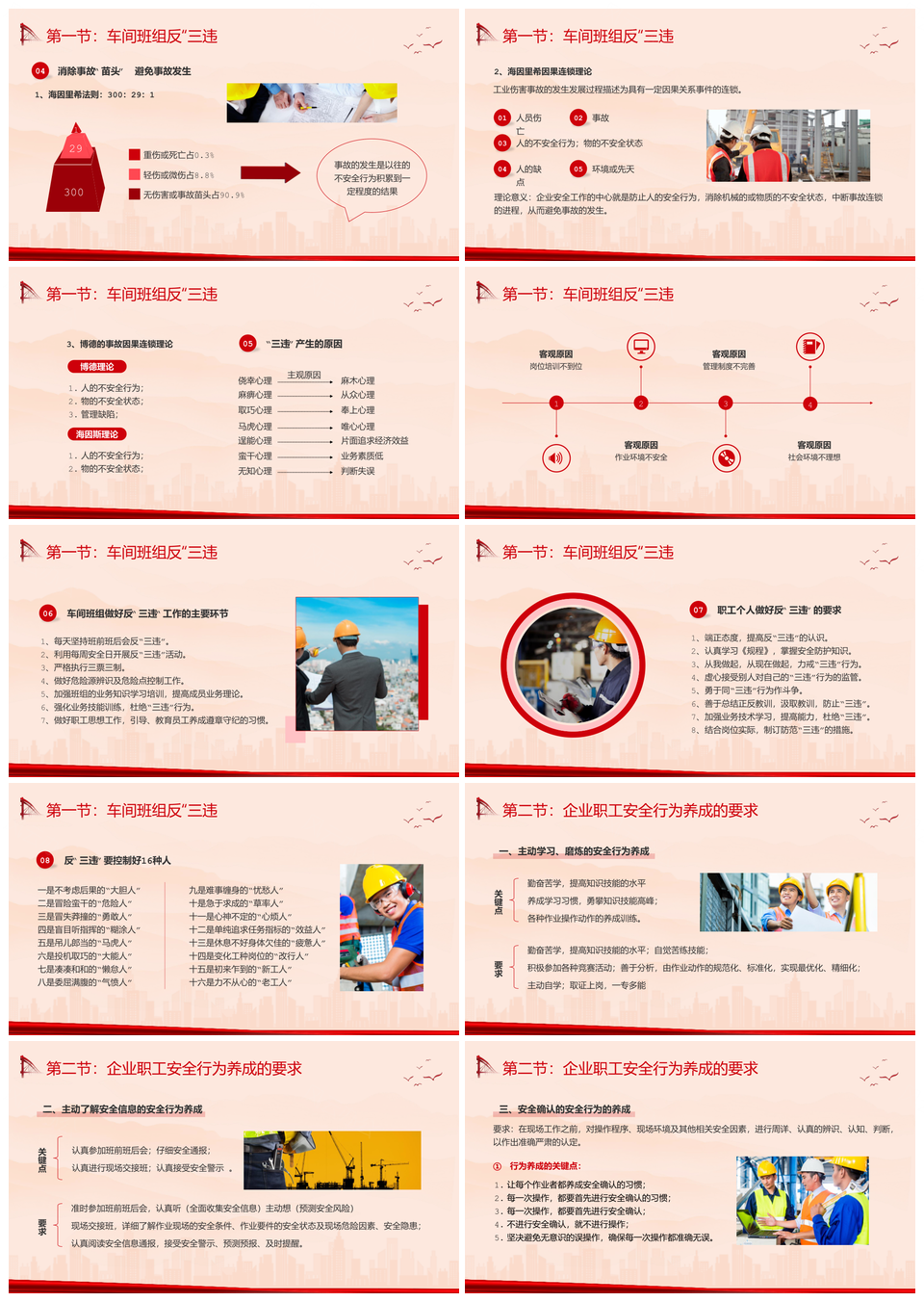 这是一张红色简约车间班组反三违安全培训PPT模板,包含红色、简约、车间、班组、反三违、安全培训等主题内容,也可用作红色简约车间安全培训、红色车间班组安全培训、简约车间班组安全培训、车间班组反三违安全培训、班组反三违安全培训、红色车间安全培训、车间反三违安全培训、反三违安全培训、红色简约车间班组、车间班组安全培训、班组安全培训、红色车间班组、车间班组安全、安全培训、红色简约车间等PPT场景使用。