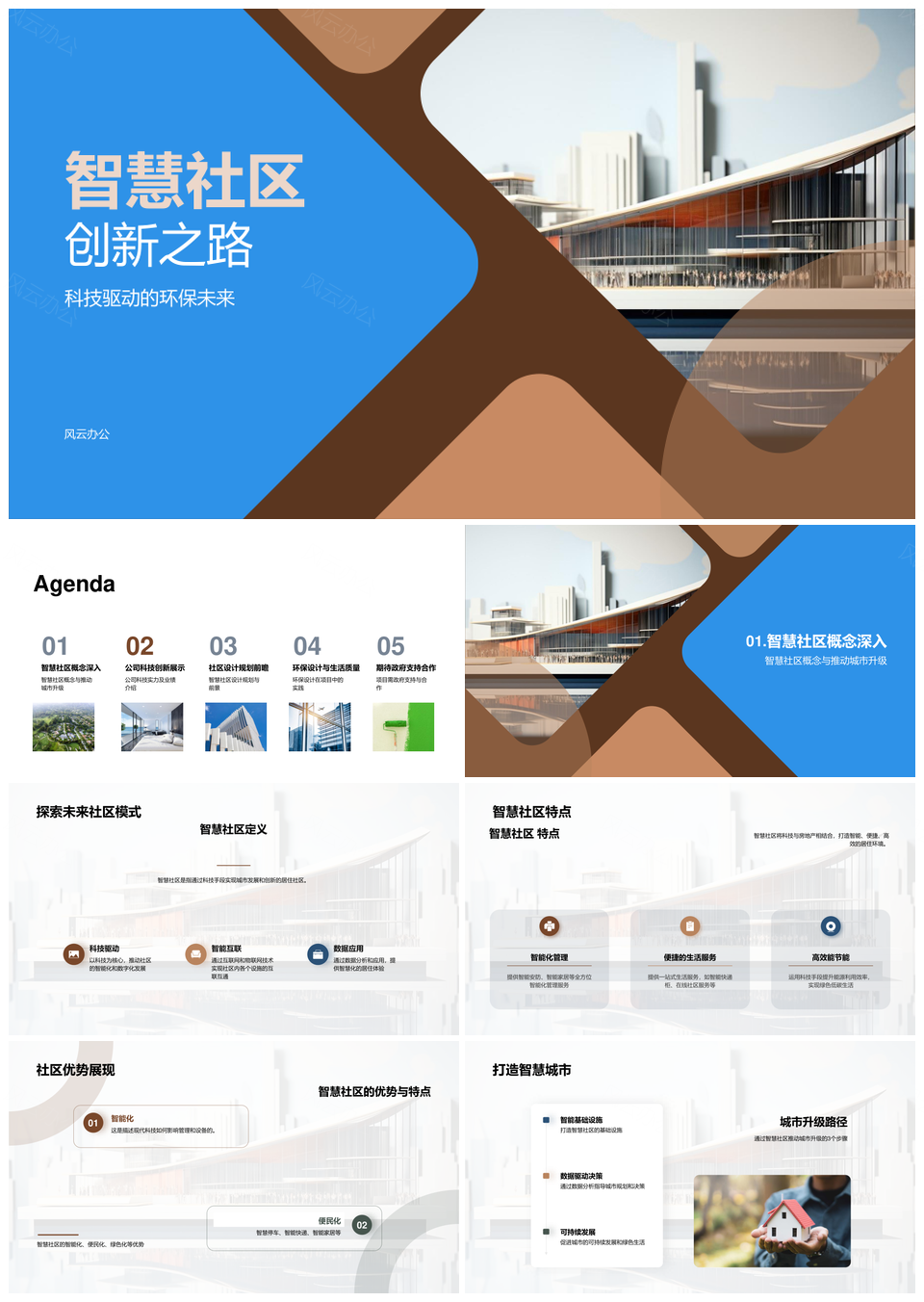 风云办公提供的科技驱动智慧社区构建环保未来PPT模板,下载格式为pptx,一共29页,作品中文字及图均可以修改和编辑,图片更改请在作品中右键图片并更换,文字修改请直接点击文字进行修改。
