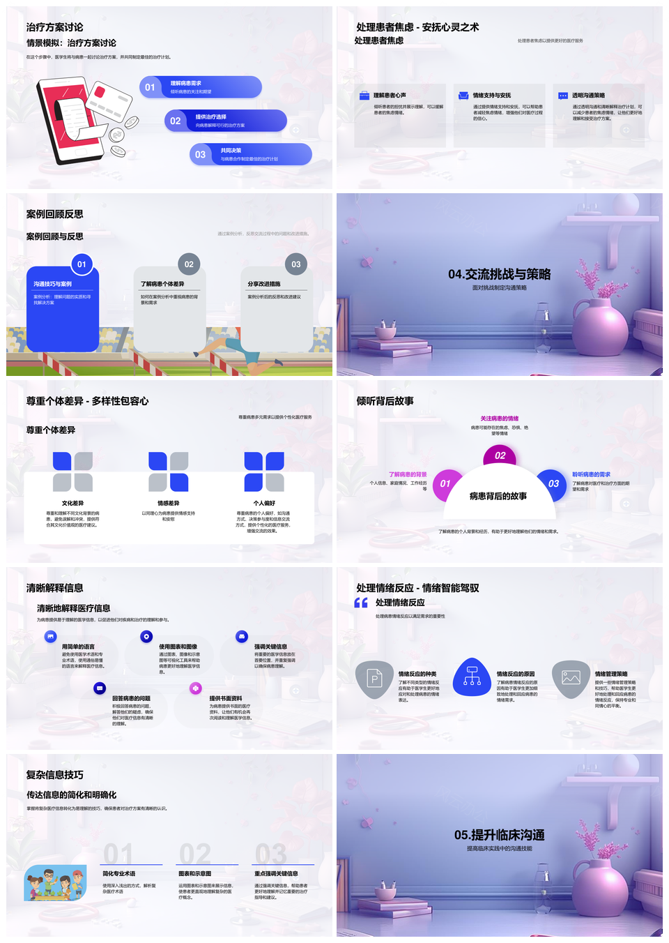 这是一张2025医患沟通艺术技巧信任同理心倾听跨文化PPT模板,包含医患沟通、艺术、技巧、信任、同理心、倾听、跨文化等主题内容,也可用作2025医患沟通艺术技巧、医患沟通艺术技巧信任、艺术技巧信任同理心、技巧信任同理心倾听、信任同理心倾听跨文化、同理心倾听跨文化医患沟通、跨文化医患沟通信任、医患沟通信任同理心、信任同理心跨文化、医患沟通艺术技巧、艺术技巧信任、技巧信任同理心、信任同理心倾听、同理心倾听跨文化、跨文化医患沟通等PPT场景使用。 风云办公提供的2025医患沟通艺术技巧信任同理心倾听跨文化PPT模板,下载格式为pptx,一共33页,作品中文字及图均可以修改和编辑,图片更改请在作品中右键图片并更换,文字修改请直接点击文字进行修改。