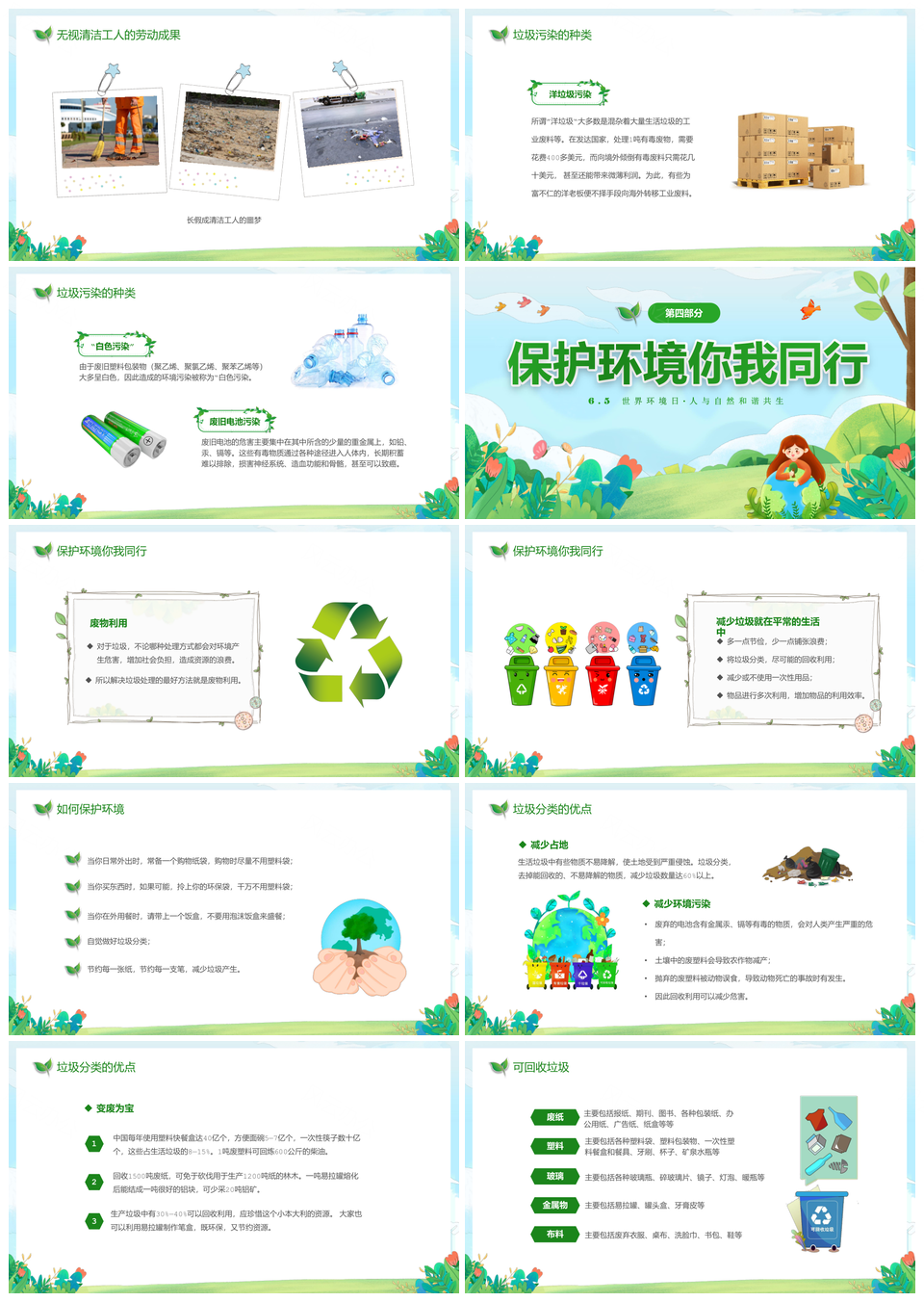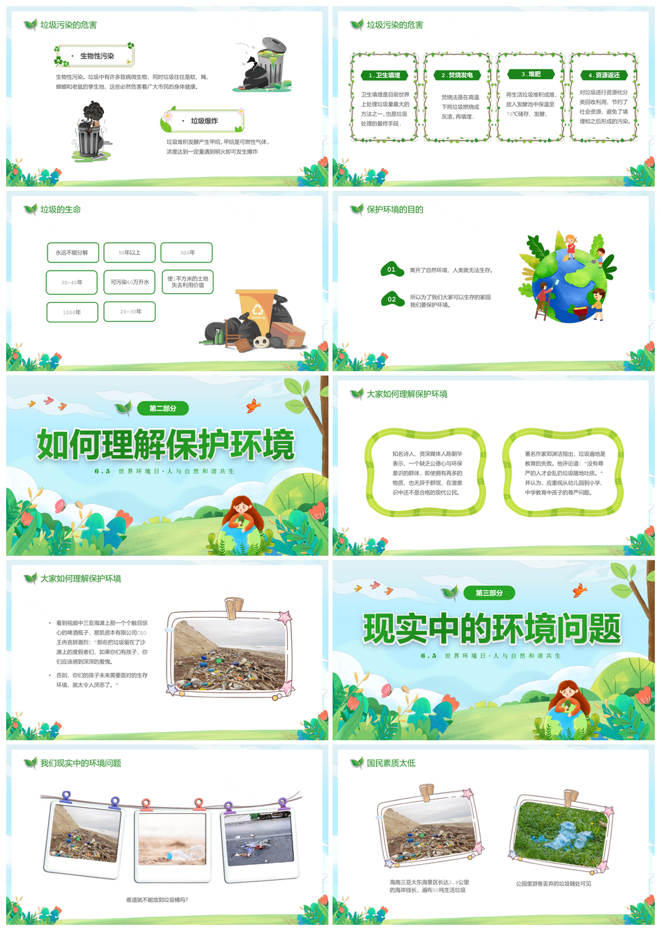 风云办公提供的世界环境日儿童环保教育主题班会PPT模板,下载格式为pptx,一共32页,作品中文字及图均可以修改和编辑,图片更改请在作品中右键图片并更换,文字修改请直接点击文字进行修改。