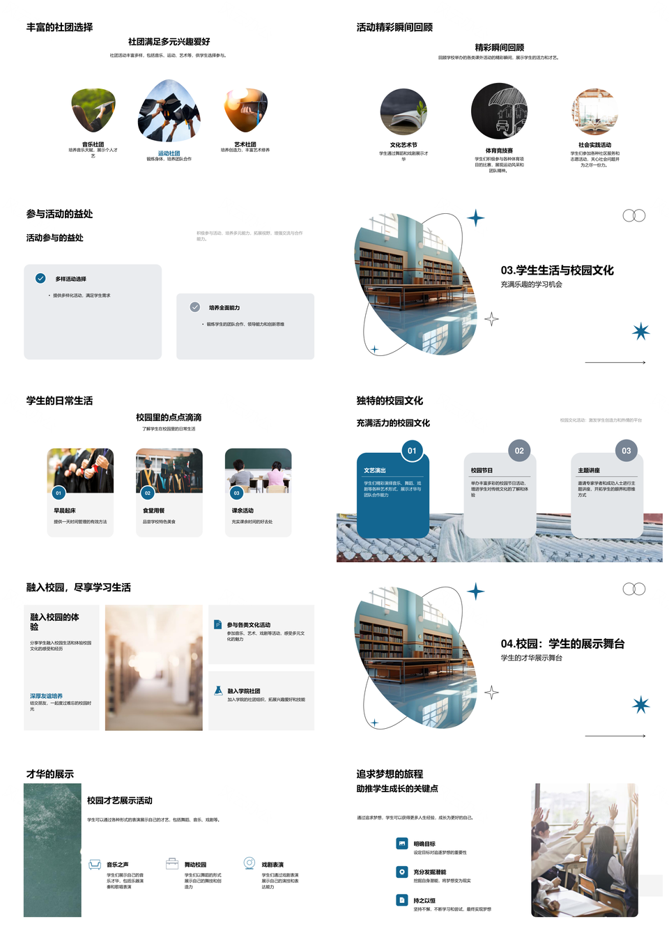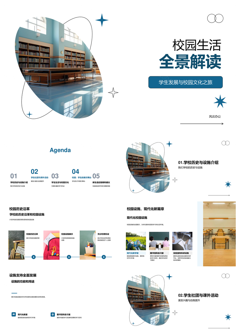 校园生活全景学生发展文化历史设施社团PPT模板