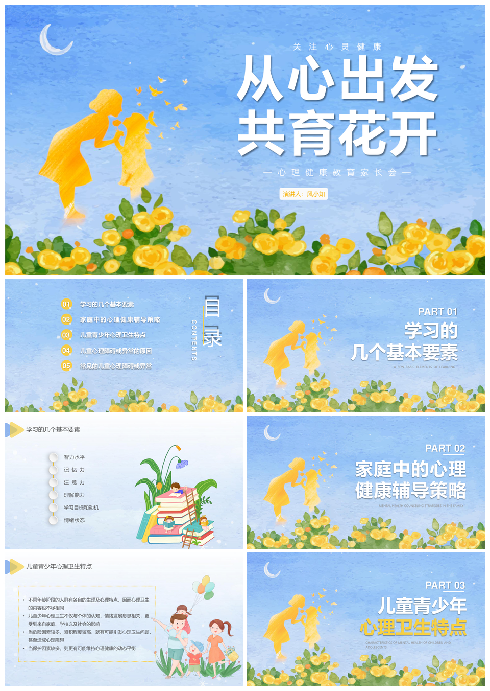 风云办公提供的蓝色水彩开学儿童心理健康家长会PPT模板,下载格式为pptx,一共25页,作品中文字及图均可以修改和编辑,图片更改请在作品中右键图片并更换,文字修改请直接点击文字进行修改。