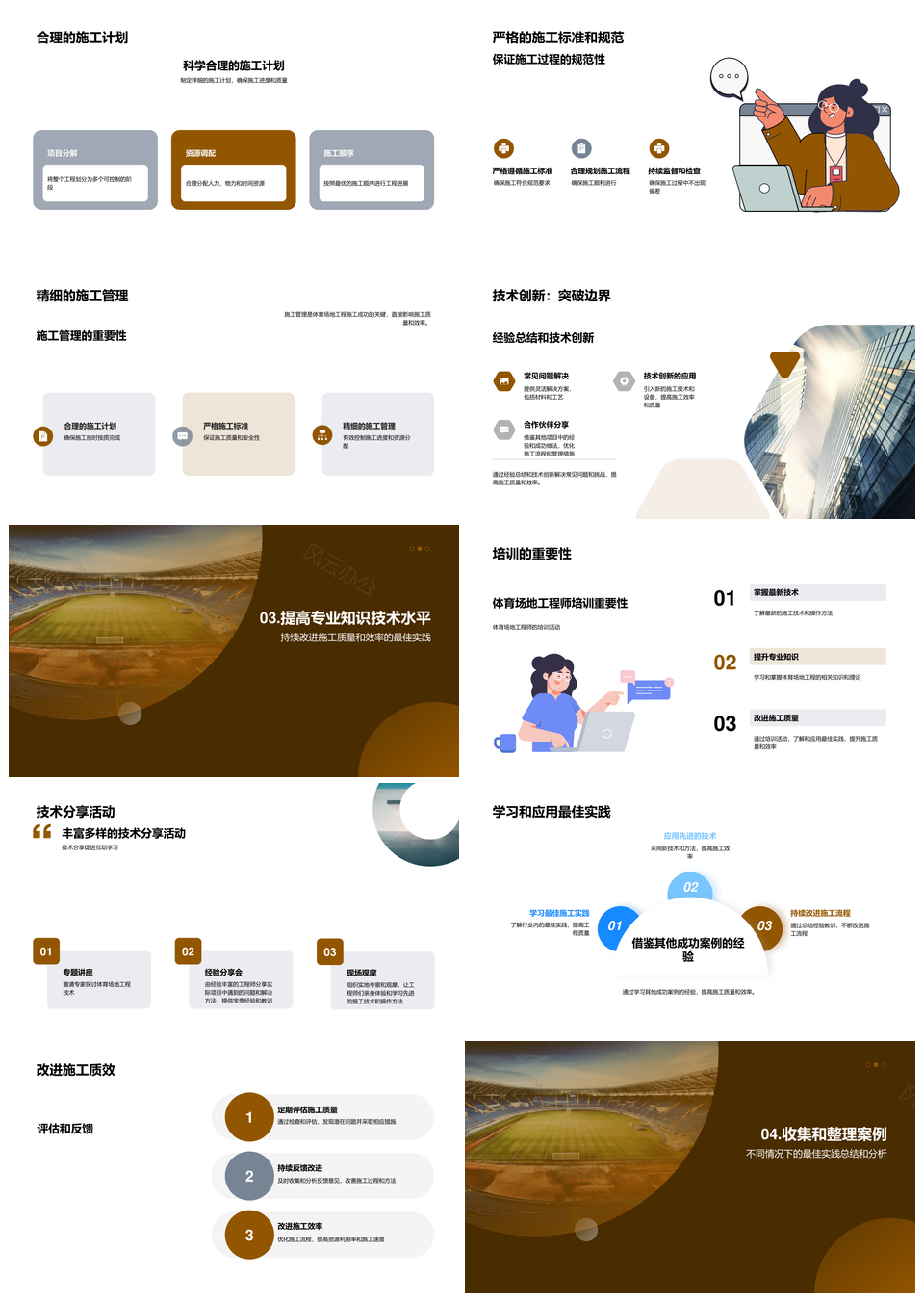 这是一张体育场施工技术设备工程师高效质优建设PPT模板,包含体育场、施工、技术、设备、工程师、高效、质优、建设等主题内容,也可用作体育场施工技术设备、施工技术设备工程师、技术设备工程师高效、设备工程师高效质优、体育场施工技术、施工技术设备、技术设备工程师、设备工程师高效、工程师高效质优、高效质优建设、体育场施工、施工技术、技术设备、设备工程师、工程师高效等PPT场景使用。 风云办公提供的体育场施工技术设备工程师高效质优建设PPT模板,下载格式为pptx,一共28页,作品中文字及图均可以修改和编辑,图片更改请在作品中右键图片并更换,文字修改请直接点击文字进行修改。
