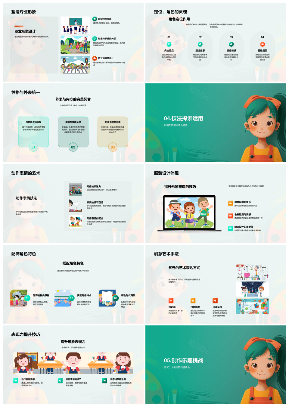 这是一张动漫创作小学人物设计美术教学构图色彩性格PPT模板,包含动漫创作、小学、人物设计、美术、教学、构图、色彩、性格等主题内容,也可用作动漫创作美术教学人物设计、小学人物设计美术教学、动漫人物设计美术教学、美术教学构图色彩性格、构图色彩性格教学、人物设计美术教学构图、创作小学人物设计、动漫创作构图色彩、动漫小学美术教学、色彩性格教学构图、人物设计色彩性格、美术教学色彩性格、动漫人物设计色彩、创作人物设计构图、小学人物设计构图等PPT场景使用。 风云办公提供的动漫创作小学人物设计美术教学构图色彩性格PPT模板,下载格式为pptx,一共33页,作品中文字及图均可以修改和编辑,图片更改请在作品中右键图片并更换,文字修改请直接点击文字进行修改。