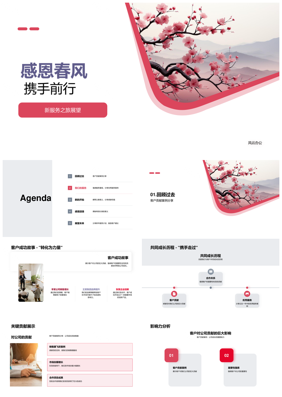 风云办公提供的春风携VIP客户感恩共启新服务之旅PPT模板,下载格式为pptx,一共33页,作品中文字及图均可以修改和编辑,图片更改请在作品中右键图片并更换,文字修改请直接点击文字进行修改。