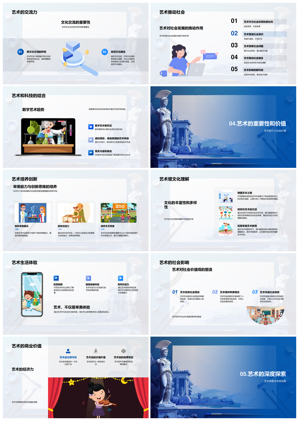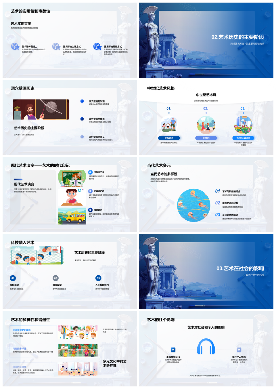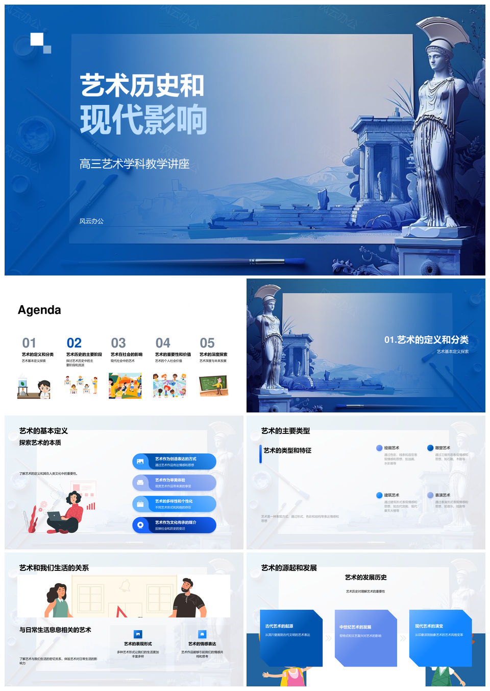 风云办公提供的艺术定义类型与历史演变及现代影响PPT模板,下载格式为pptx,一共33页,作品中文字及图均可以修改和编辑,图片更改请在作品中右键图片并更换,文字修改请直接点击文字进行修改。