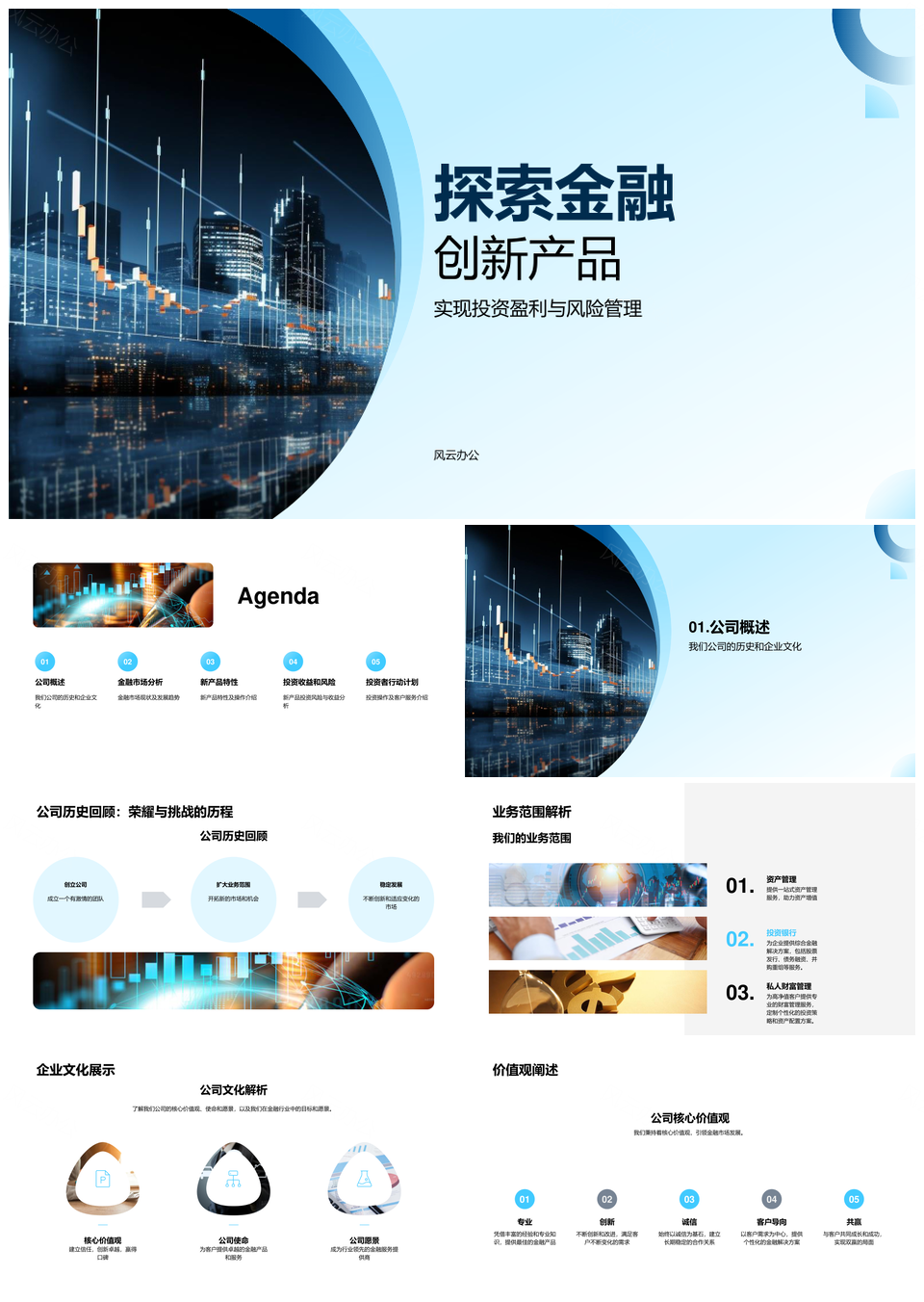 风云办公提供的金融创新产品开发趋势风控收益探析PPT模板,下载格式为pptx,一共28页,作品中文字及图均可以修改和编辑,图片更改请在作品中右键图片并更换,文字修改请直接点击文字进行修改。