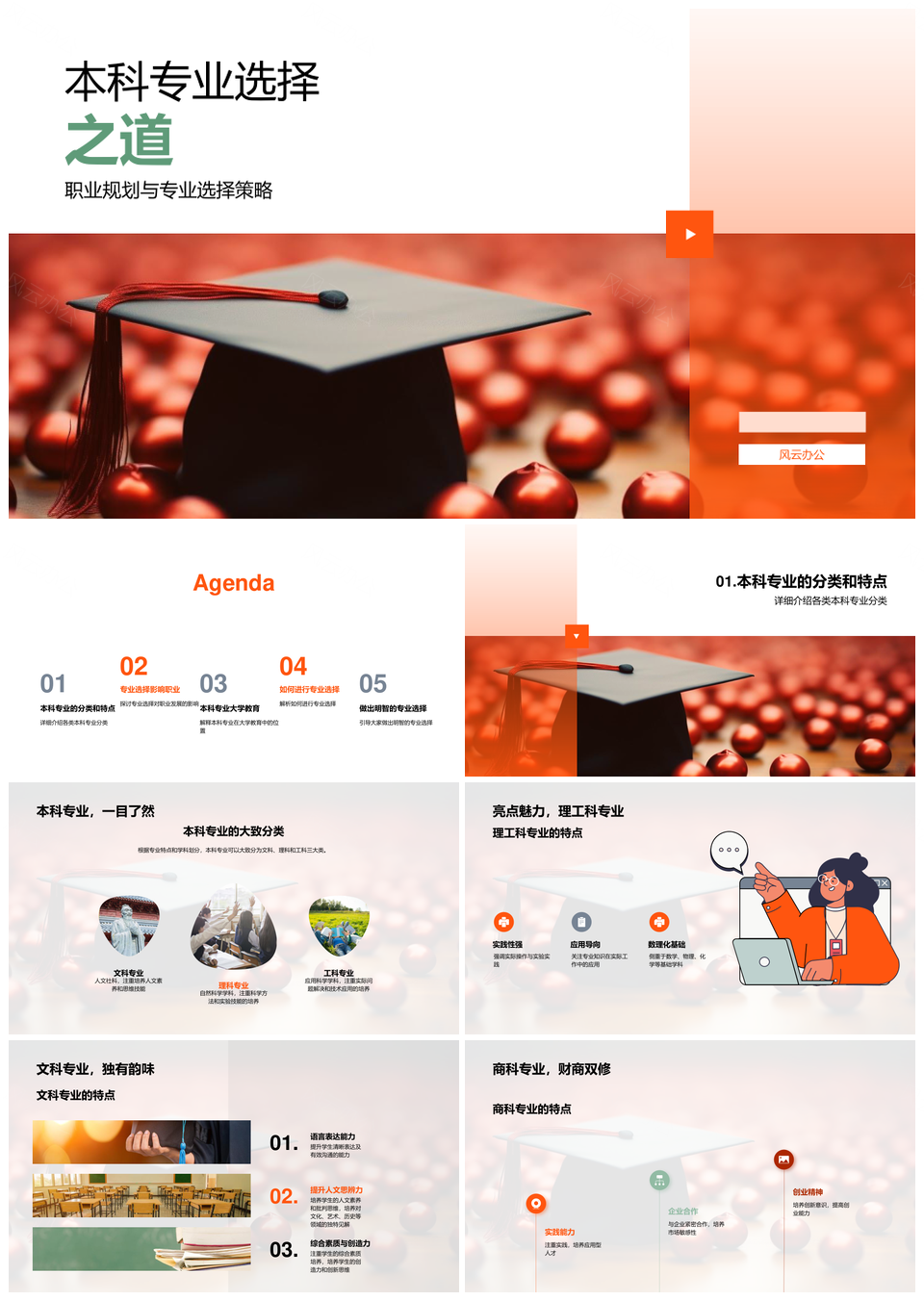 风云办公提供的本科专业选择策略与职业发展方向规划PPT模板,下载格式为pptx,一共29页,作品中文字及图均可以修改和编辑,图片更改请在作品中右键图片并更换,文字修改请直接点击文字进行修改。