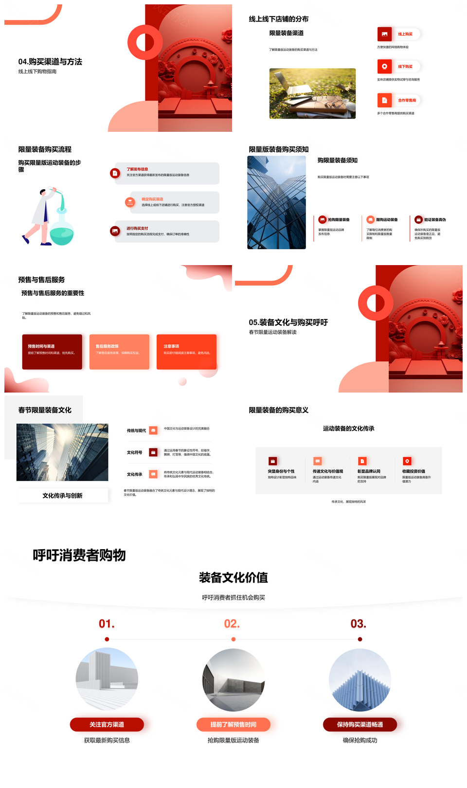 这是一张春节限量运动装备融文化元素独特设计显优势PPT模板,包含春节、限量、运动装备、融、文化元素、独特设计、优势等主题内容,也可用作春节限量运动装备文化元素、限量运动装备文化元素独特设计、运动装备文化元素独特设计优势、春节限量运动装备独特设计、春节文化元素独特设计优势、限量运动装备文化元素优势、春节文化元素独特设计、限量运动装备独特设计、运动装备文化元素独特设计、文化元素独特设计优势、春节限量运动装备、限量运动装备文化元素、春节文化元素优势、运动装备独特设计、独特设计显优势等PPT场景使用。 风云办公提供的春节限量运动装备融文化元素独特设计显优势PPT模板,下载格式为pptx,一共27页,作品中文字及图均可以修改和编辑,图片更改请在作品中右键图片并更换,文字修改请直接点击文字进行修改。