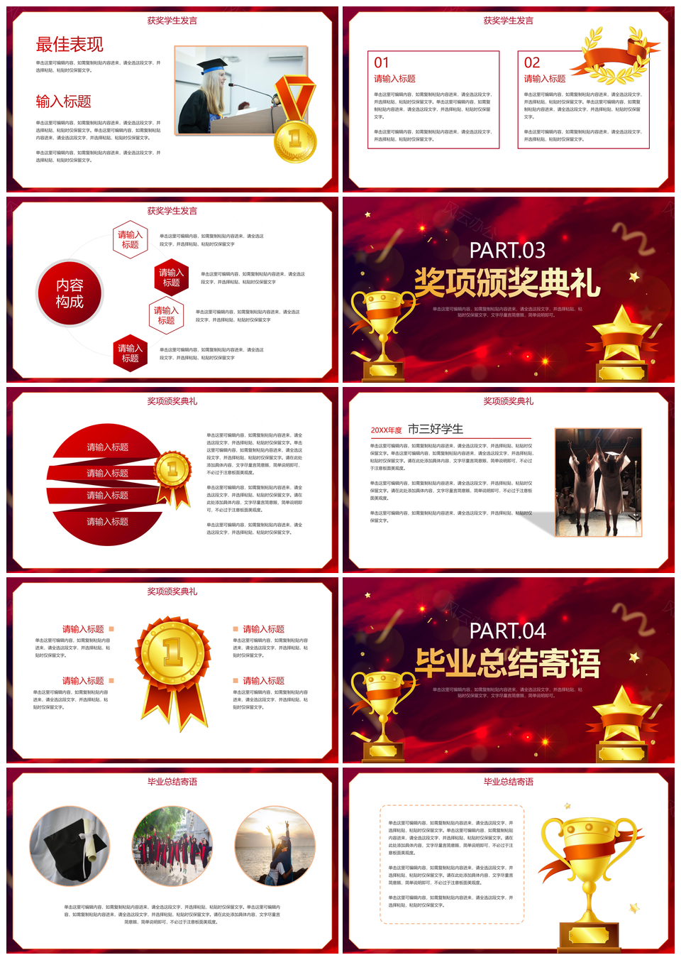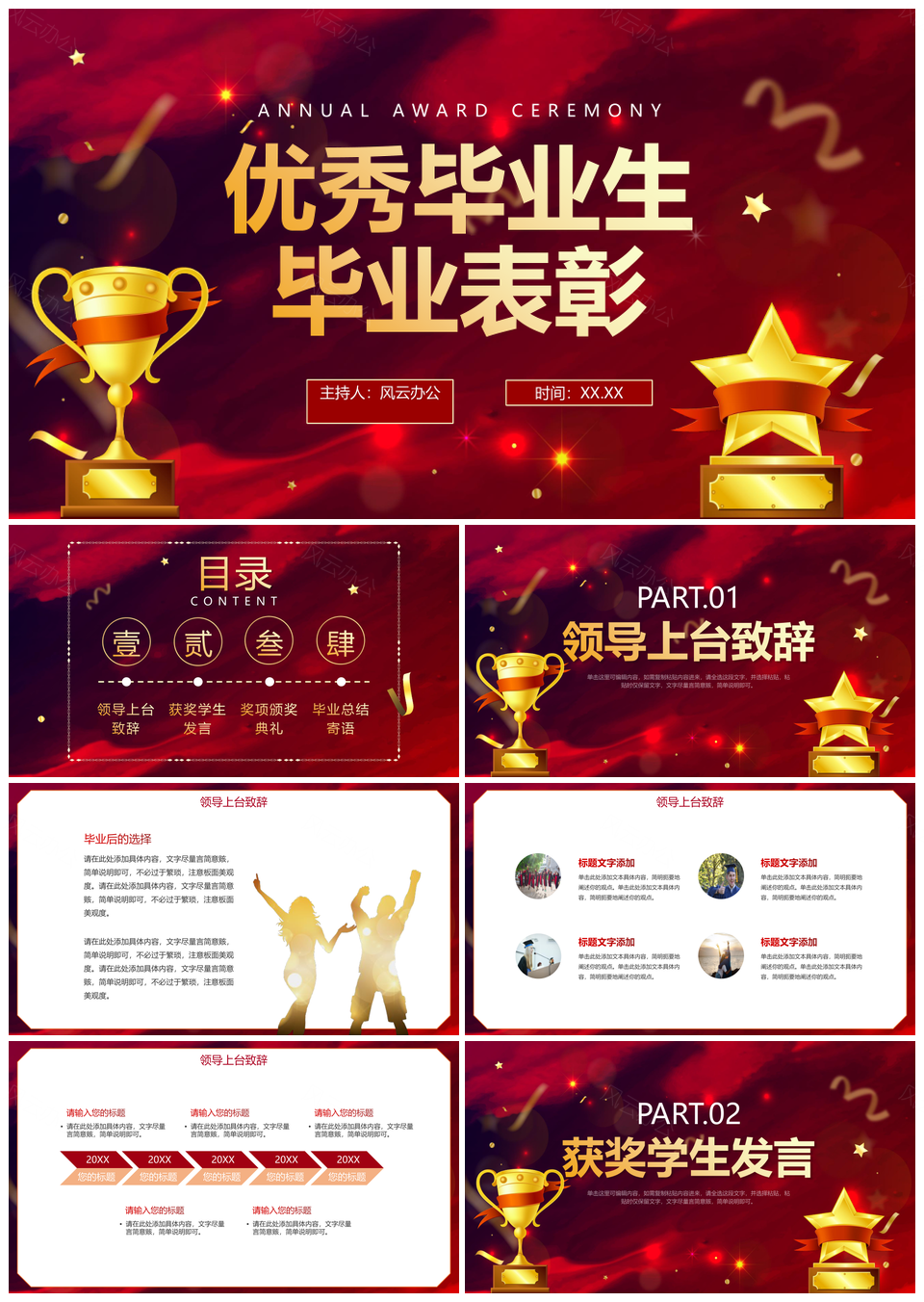 红色答谢会颁奖典礼庆典学校简约实用商务通用商业计划书PPT模板