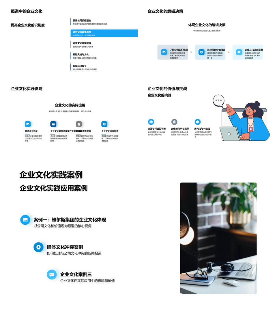 风云办公提供的传媒报道决策与企业文化价值观PPT模板,下载格式为pptx,一共33页,作品中文字及图均可以修改和编辑,图片更改请在作品中右键图片并更换,文字修改请直接点击文字进行修改。