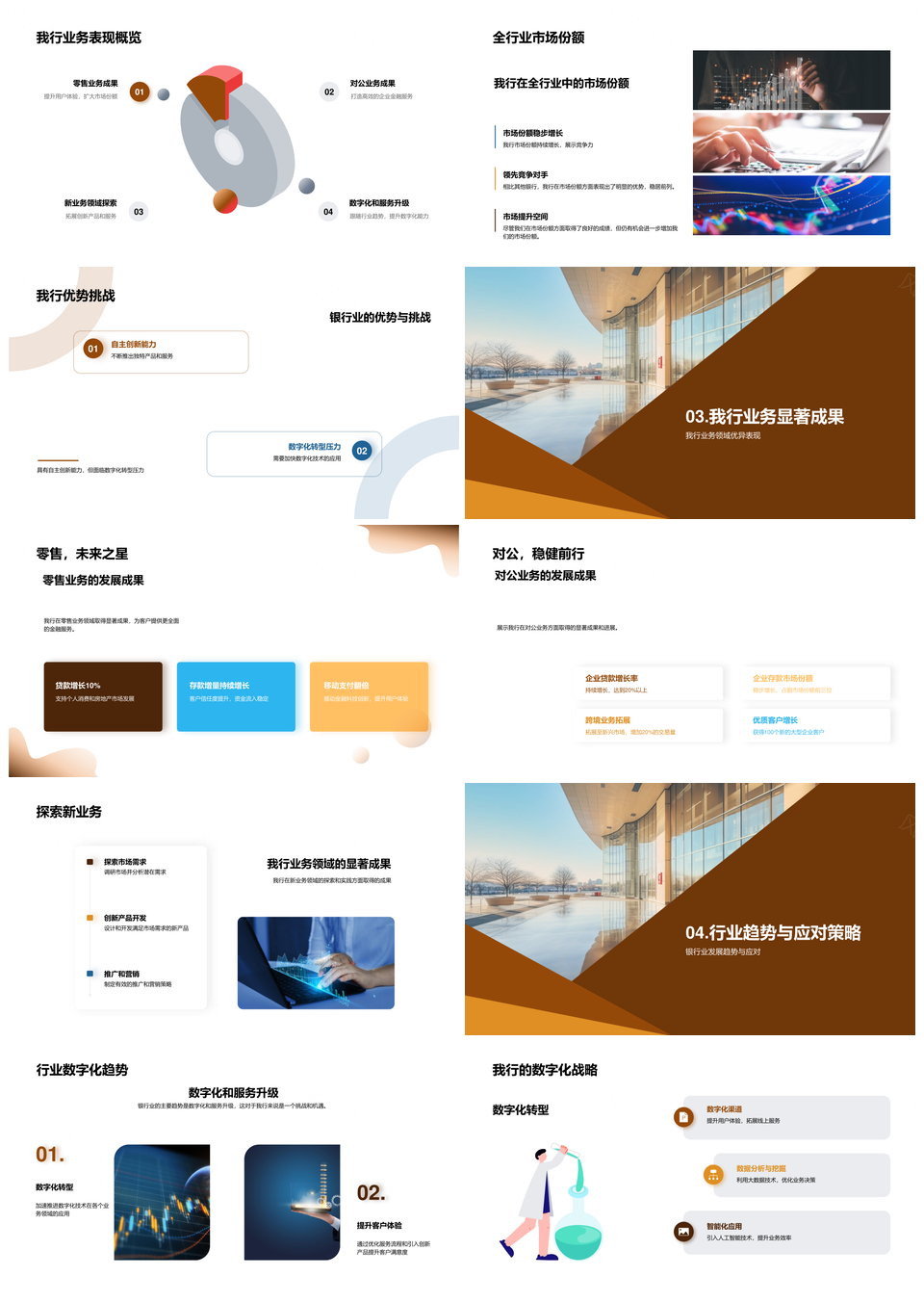 这是一张银行业半年业务趋势数字化战略竞逐新领域PPT模板,包含银行业、半年、业务趋势、数字化战略、竞逐、新领域等主题内容,也可用作银行业半年业务趋势、半年业务趋势数字化、业务趋势数字化战略、趋势数字化战略竞逐、数字化战略竞逐新领域、银行业半年业务、半年业务趋势、业务趋势数字化、趋势数字化战略、数字化战略竞逐、战略竞逐新领域、银行业半年、半年业务、业务趋势、趋势数字化等PPT场景使用。 风云办公提供的银行业半年业务趋势数字化战略竞逐新领域PPT模板,下载格式为pptx,一共23页,作品中文字及图均可以修改和编辑,图片更改请在作品中右键图片并更换,文字修改请直接点击文字进行修改。