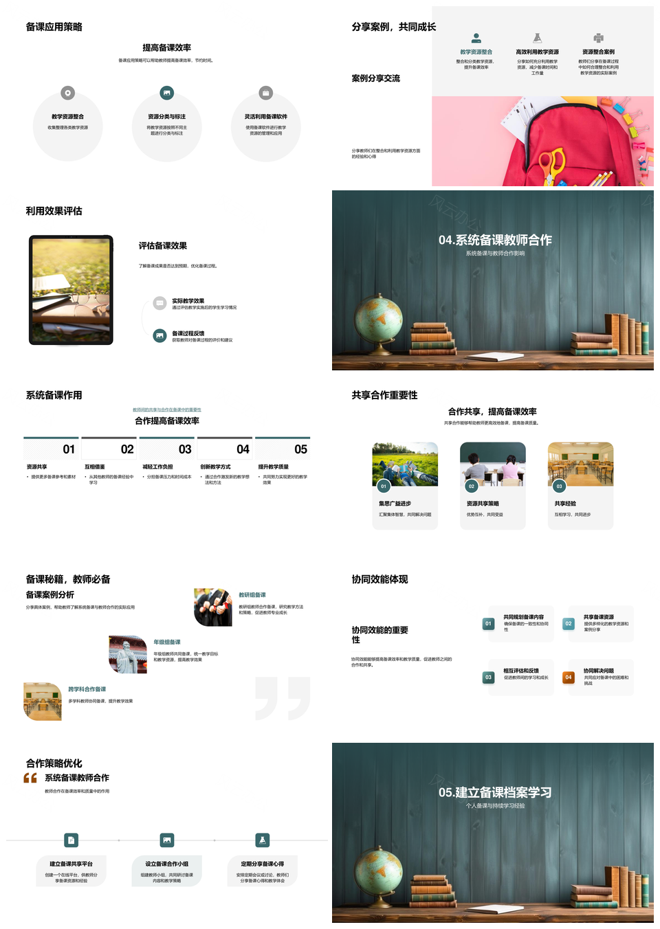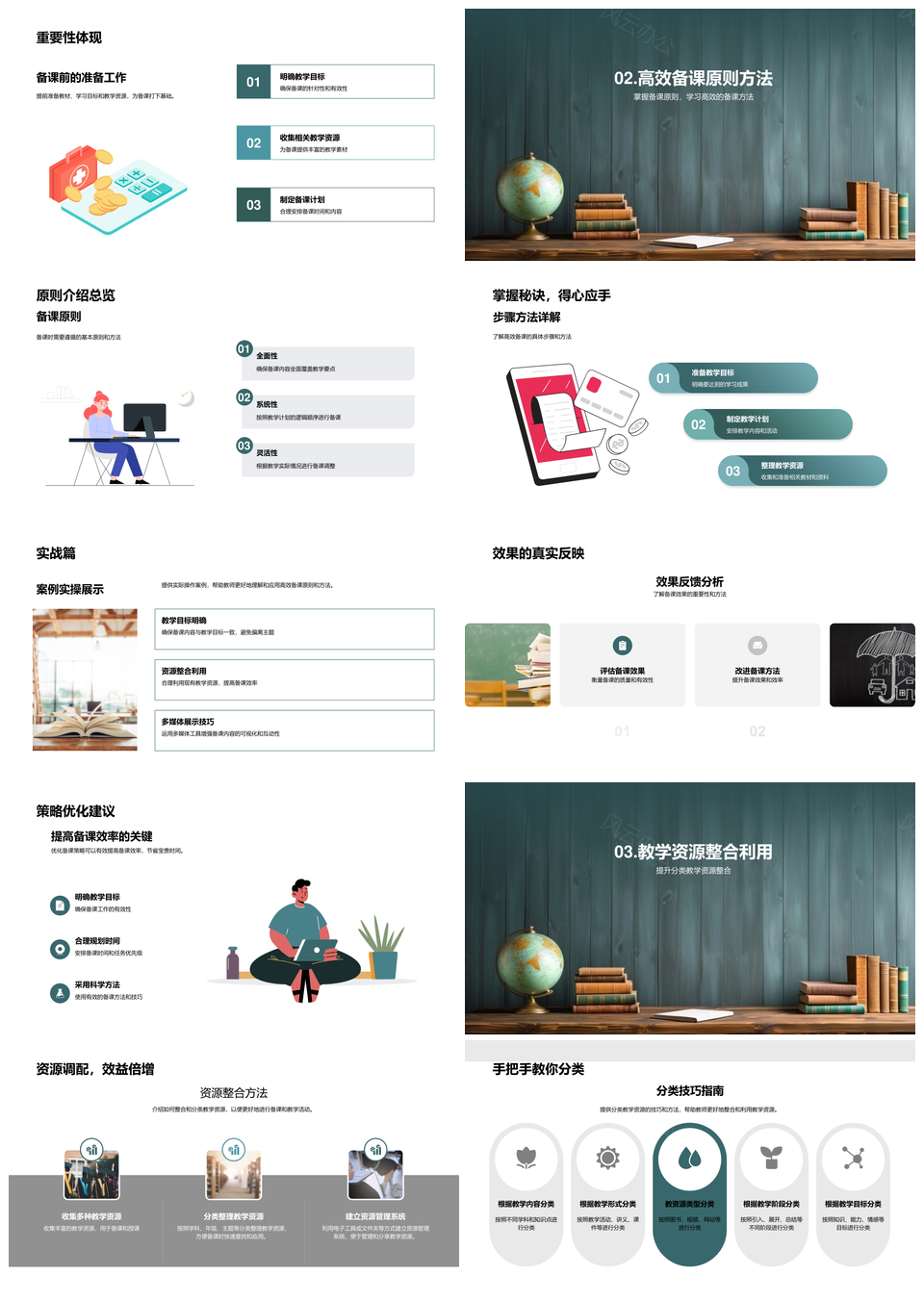 这是一张教师合作整合资源提升备课效能案例分享PPT模板,包含教师、合作、整合、资源、提升、备课、效能、案例、分享等主题内容,也可用作教师合作整合资源、合作整合资源提升、整合资源提升备课、资源提升备课效能、提升备课效能案例、备课效能案例分享、教师合作整合、合作整合资源、整合资源提升、资源提升备课、提升备课效能、备课效能案例、教师合作、合作整合、整合资源等PPT场景使用。 风云办公提供的教师合作整合资源提升备课效能案例分享PPT模板,下载格式为pptx,一共33页,作品中文字及图均可以修改和编辑,图片更改请在作品中右键图片并更换,文字修改请直接点击文字进行修改。