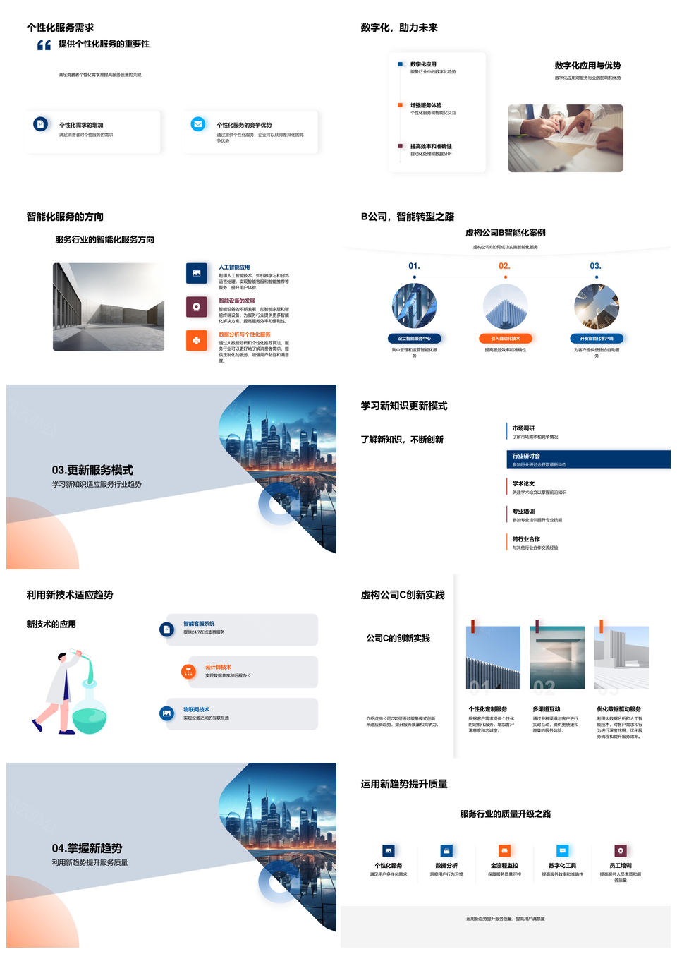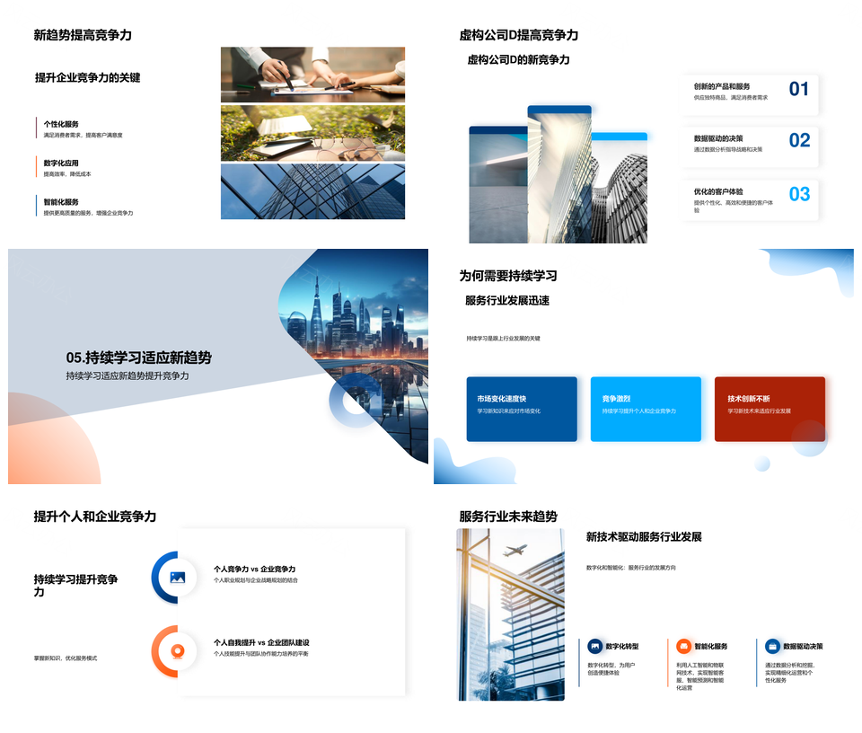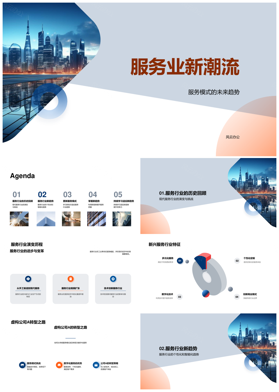 风云办公提供的服务业演变新兴模式革新未来城市景观PPT模板,下载格式为pptx,一共24页,作品中文字及图均可以修改和编辑,图片更改请在作品中右键图片并更换,文字修改请直接点击文字进行修改。