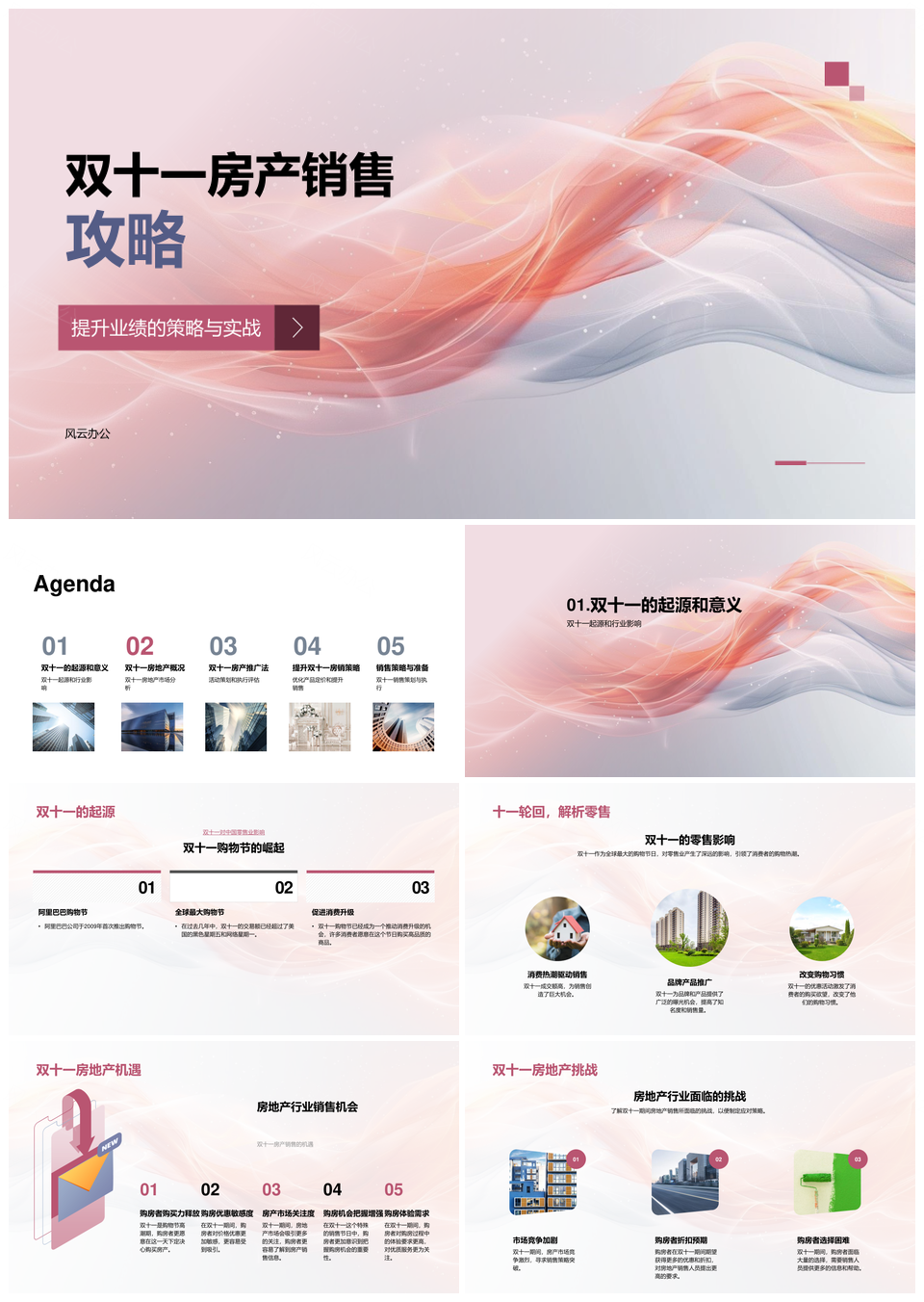 双十一房产销售策略优惠推广竞争定价购房攻略PPT模板推荐