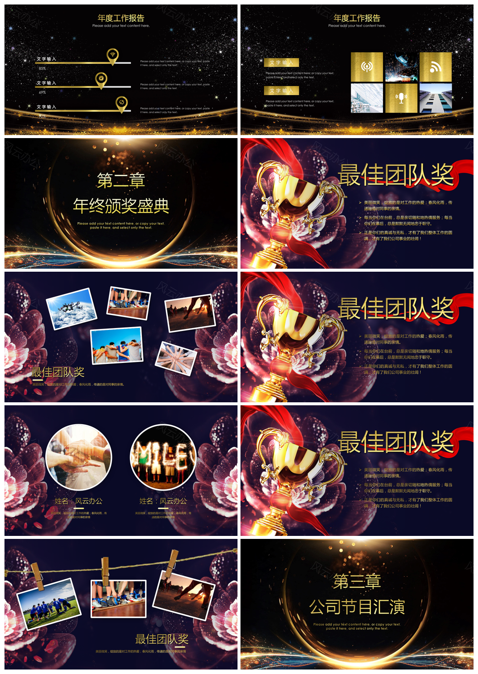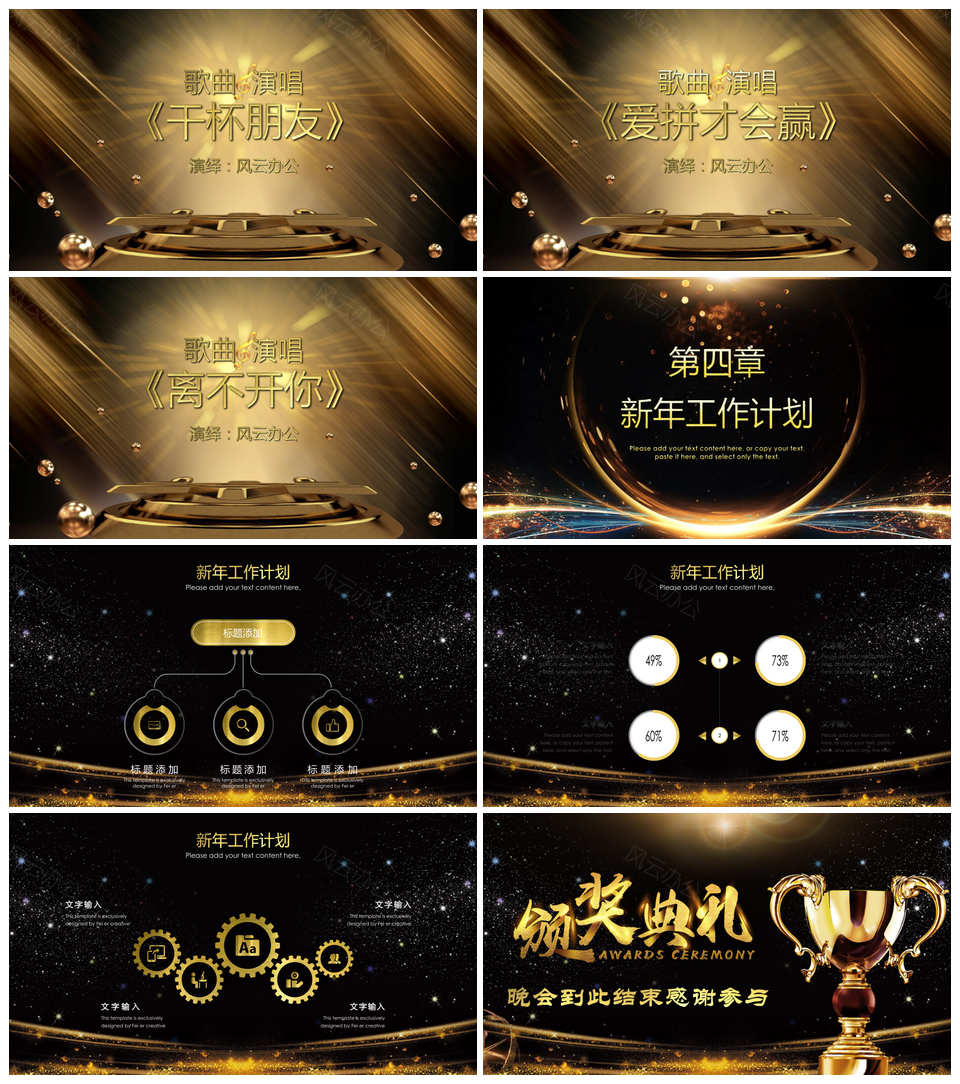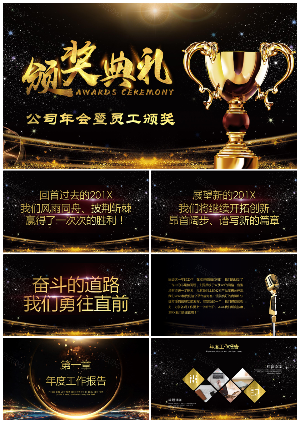 这是一张公司年会暨员工颁奖PPT模板,包含公司、年会、暨、员工、颁奖等主题内容,也可用作公司、年会、员工、颁奖 公司年会员工颁奖、公司年会颁奖、公司员工颁奖、年会员工颁奖、公司年会、公司员工、公司颁奖、年会颁奖、员工颁奖等PPT场景使用。 风云办公提供的公司年会暨员工颁奖PPT模板,下载格式为pptx,一共25页,作品中文字及图均可以修改和编辑,图片更改请在作品中右键图片并更换,文字修改请直接点击文字进行修改。
