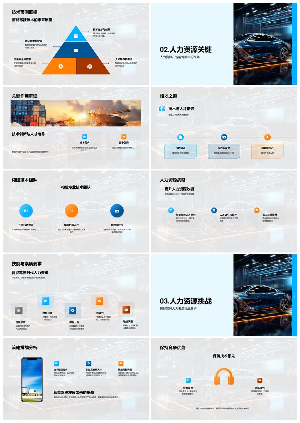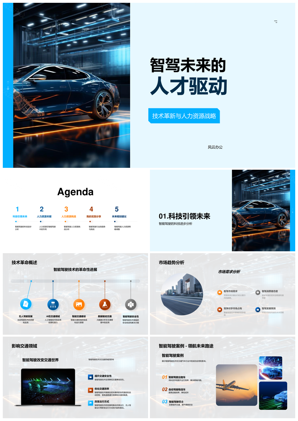 风云办公提供的智能驾驶人才战略驱动技术革新PPT模板,下载格式为pptx,一共33页,作品中文字及图均可以修改和编辑,图片更改请在作品中右键图片并更换,文字修改请直接点击文字进行修改。