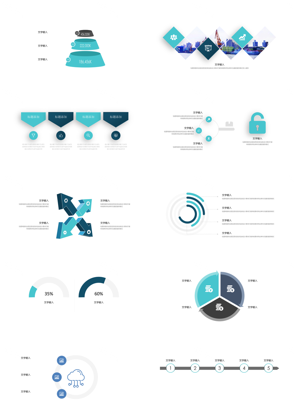 风云办公提供的浅蓝色创意图形并列关系数据关系PPT图表合集,下载格式为pptx,一共32页,作品中文字及图均可以修改和编辑,图片更改请在作品中右键图片并更换,文字修改请直接点击文字进行修改。