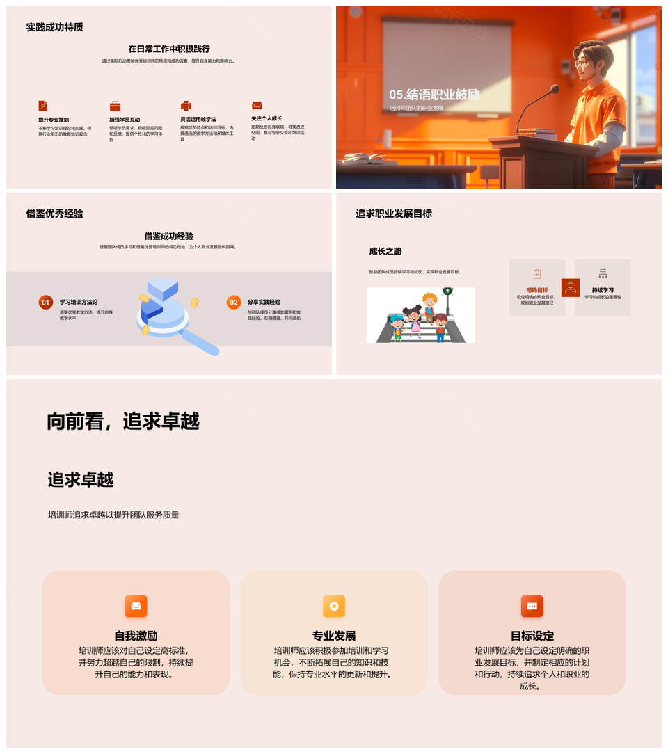 这是一张培训师年度精华经验技巧成就团队高质培训激发热情应对挑战PPT模板,包含培训师、年度、精华、经验、技巧、成就、团队、高质、培训、激发、热情、应对、挑战等主题内容,也可用作培训师年度精华经验、年度精华经验技巧、精华经验技巧成就、经验技巧成就团队、成就团队高质培训、团队高质培训激发、高质培训激发热情、培训激发热情应对、激发热情应对挑战、精华经验技巧、经验技巧成就、成就团队高质、团队高质培训、高质培训激发、培训激发热情等PPT场景使用。 风云办公提供的培训师年度精华经验技巧成就团队高质培训激发热情应对挑战PPT模板,下载格式为pptx,一共23页,作品中文字及图均可以修改和编辑,图片更改请在作品中右键图片并更换,文字修改请直接点击文字进行修改。