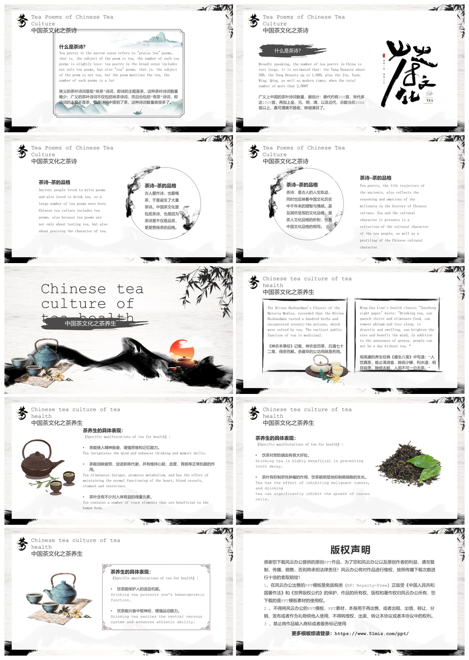 风云办公提供的中国水墨古风茶文化教育课件模板,下载格式为pptx,一共28页,作品中文字及图均可以修改和编辑,图片更改请在作品中右键图片并更换,文字修改请直接点击文字进行修改。